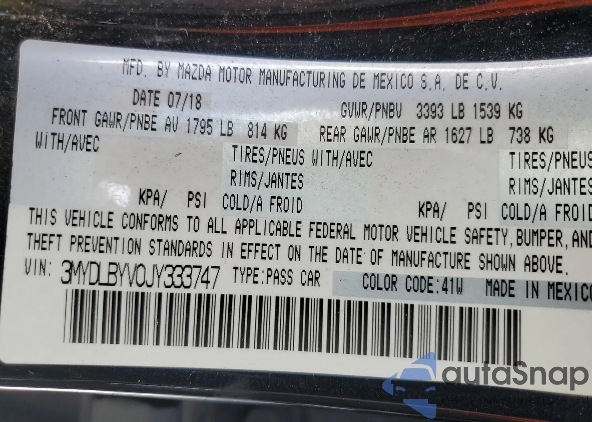 • VIN 3MYDLBYV0JY333747