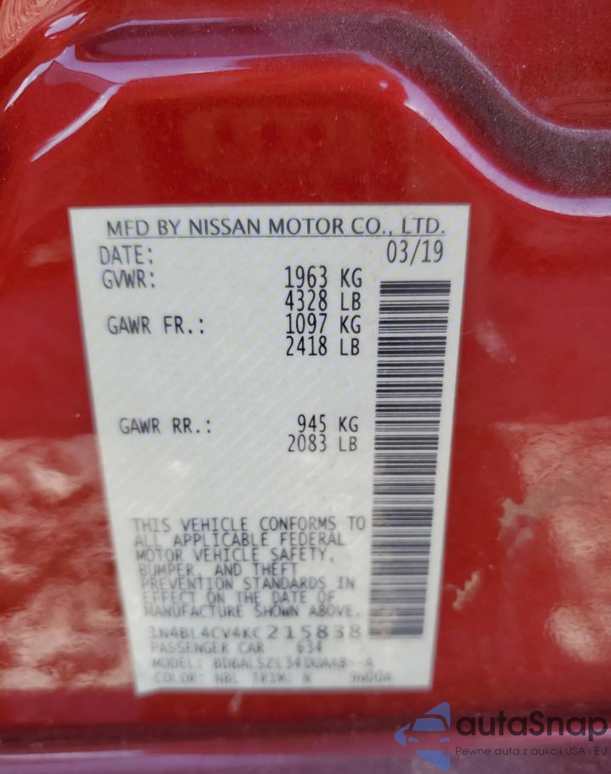 • VIN 1N4BL4CV4KC215838