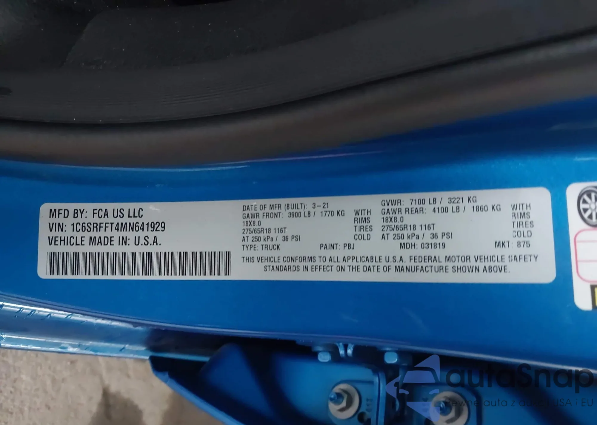 • VIN 1C6SRFFT4MN641929