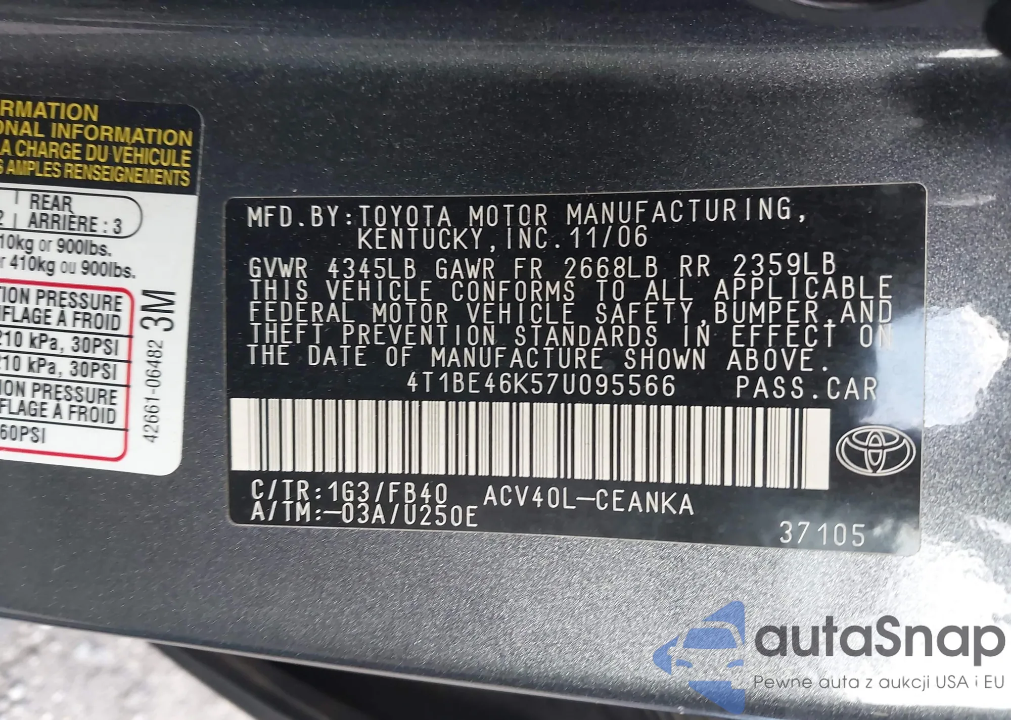 LOT: 43940912 VIN: 1NXBR32E33Z000964