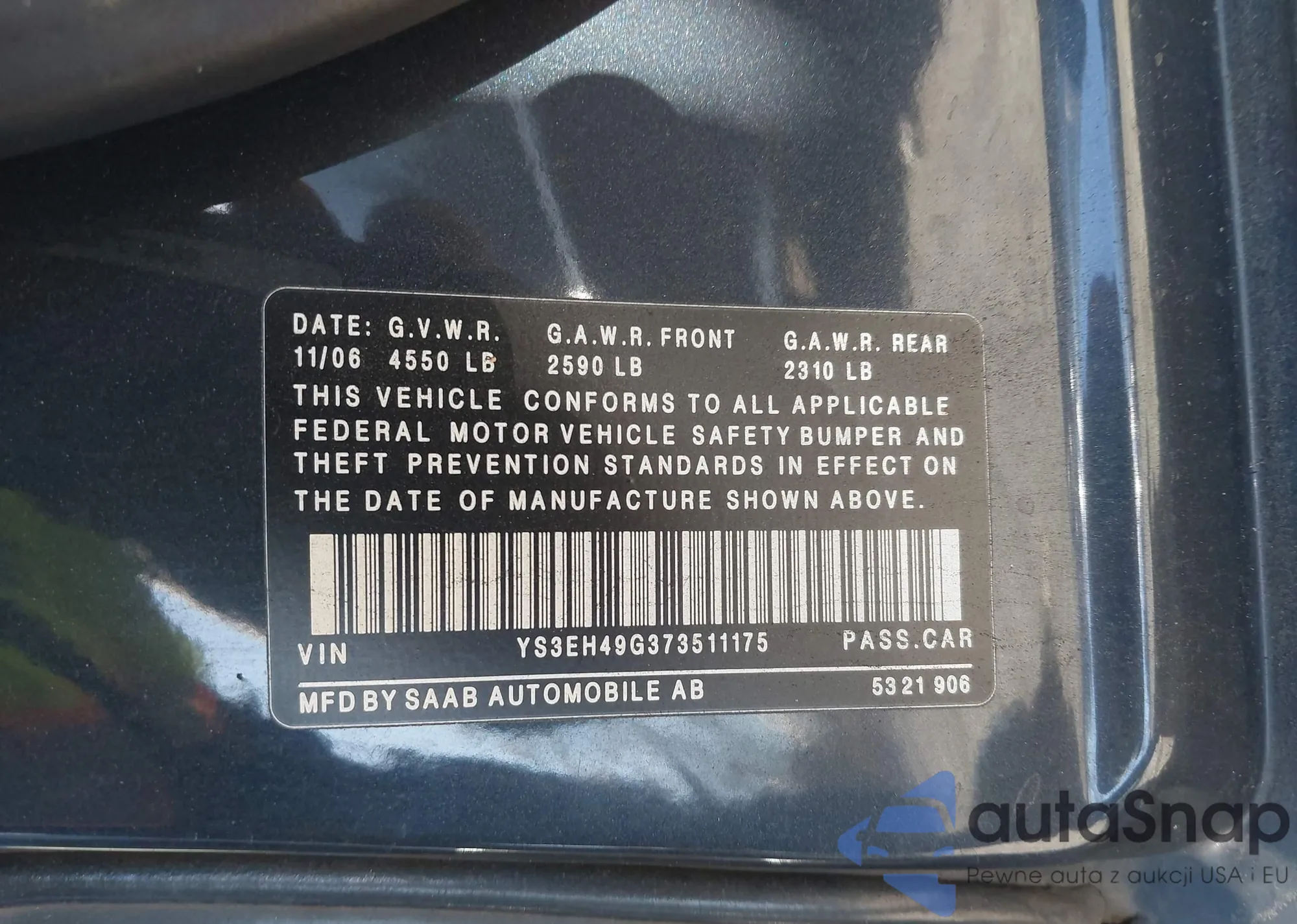 LOT: 43637966 VIN: YS3EH49G373511175