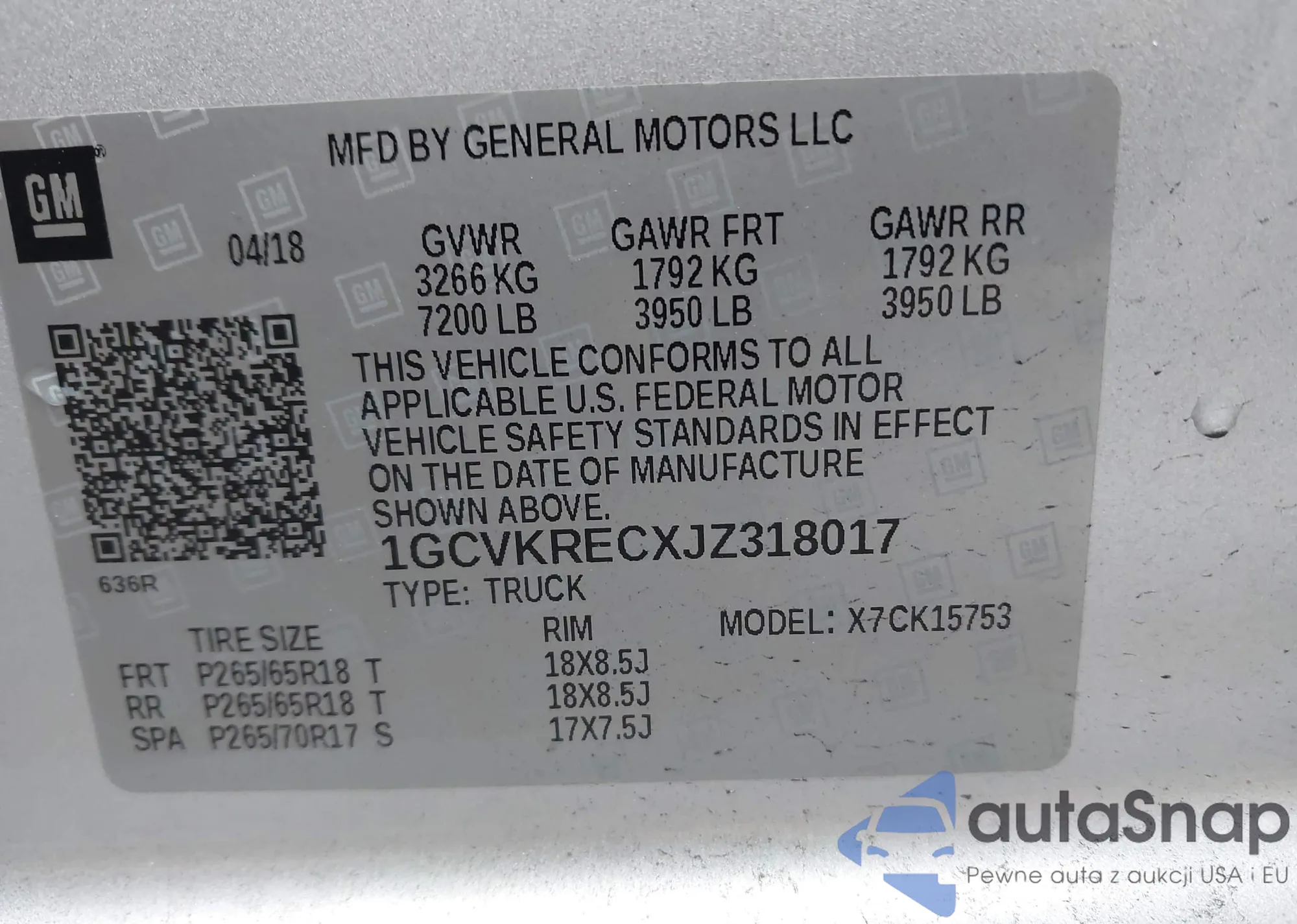 • VIN 3GTPUCEK4NG523720