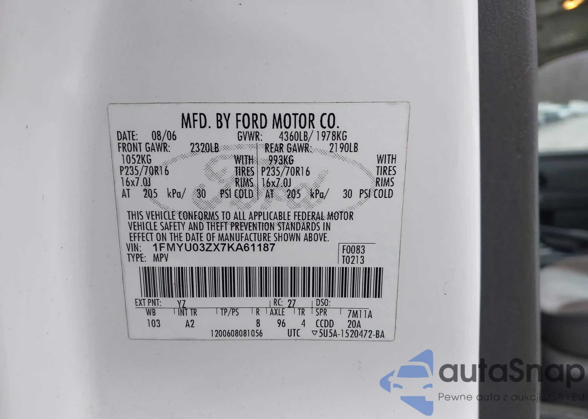 • VIN 1FMYU03ZX7KA61187
