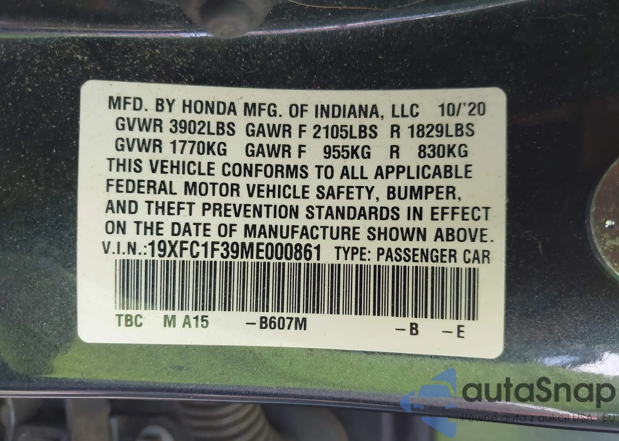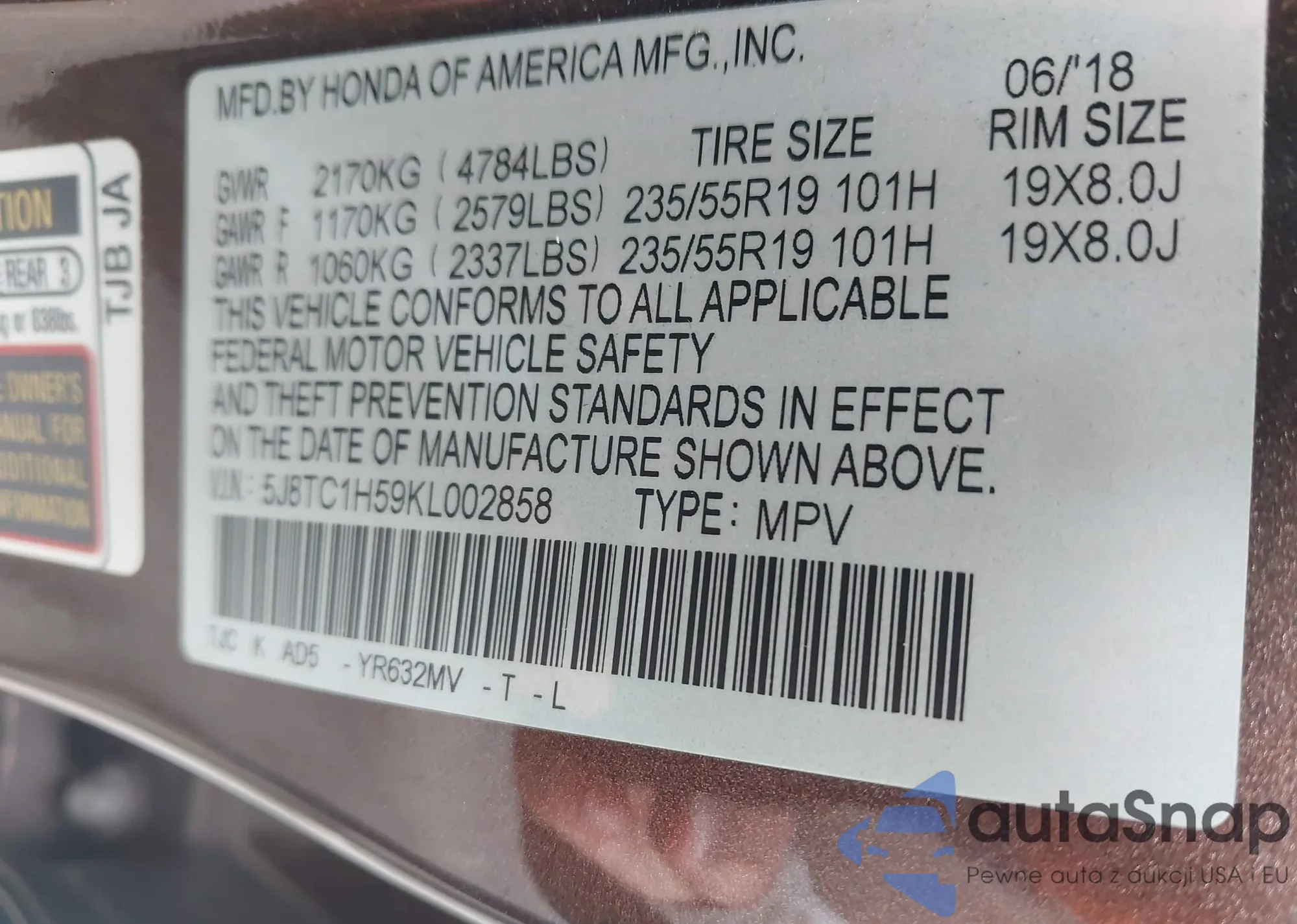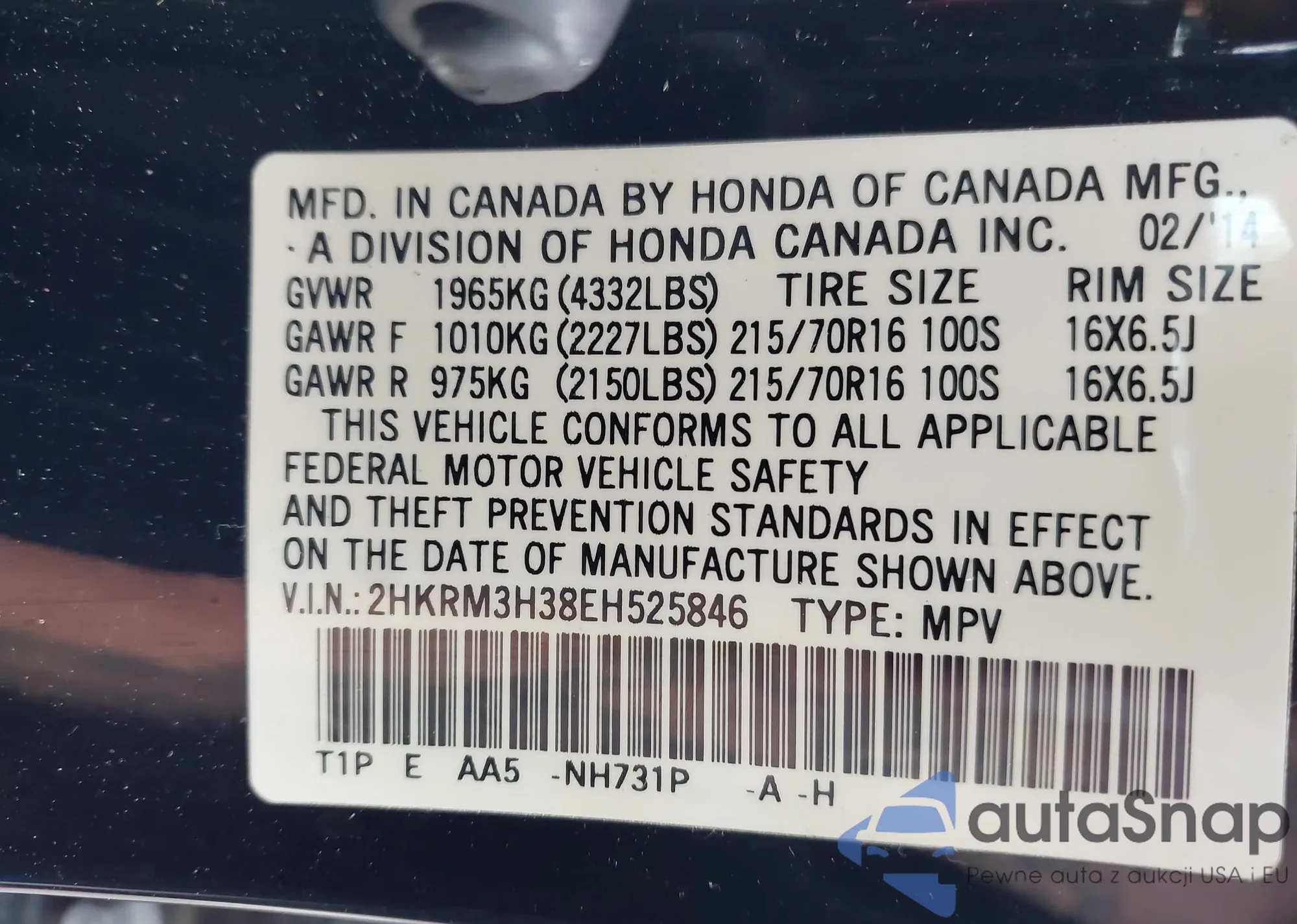 • VIN 2HKRM3H38EH525846