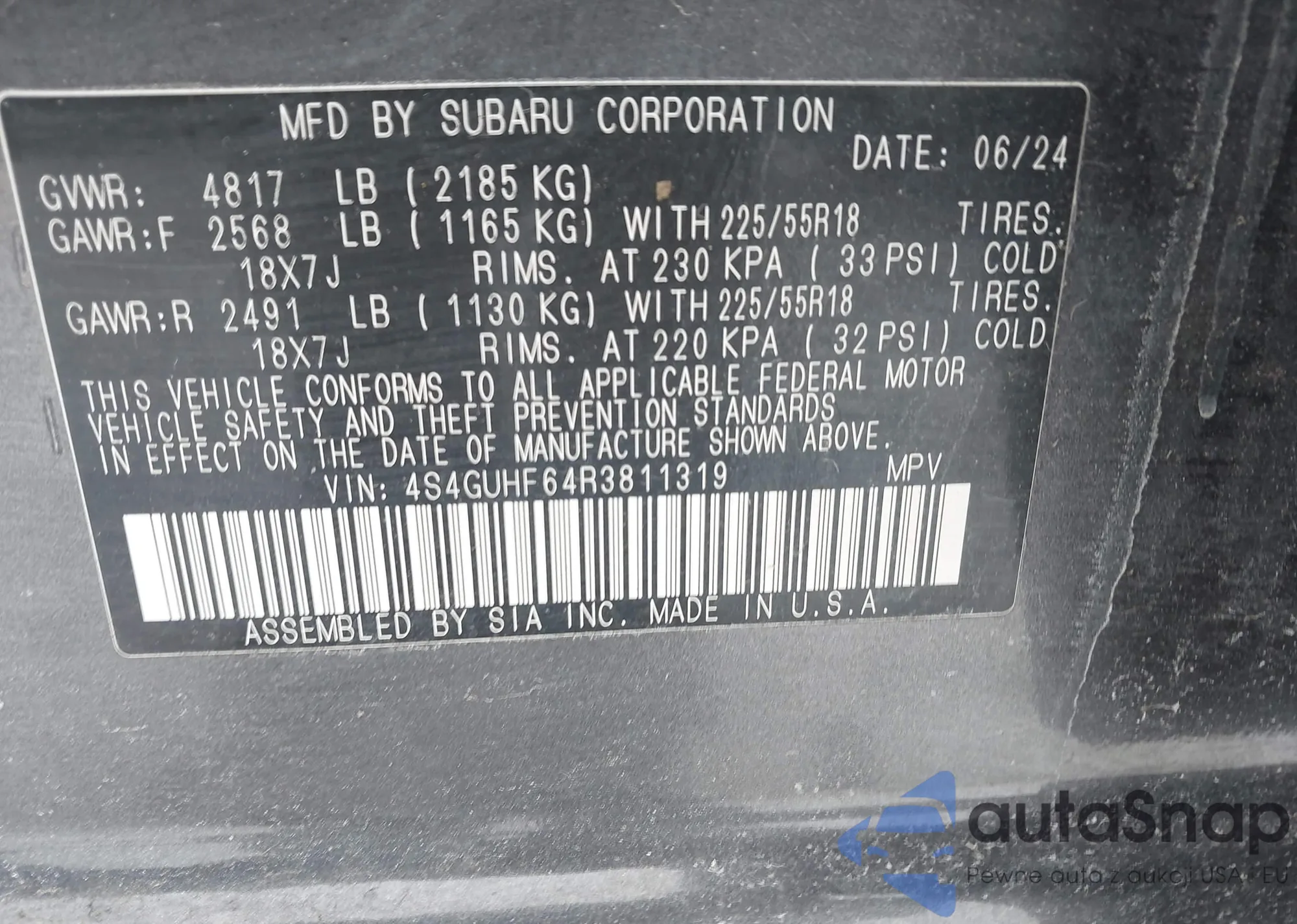 • VIN 4S4GUHF64R3811319