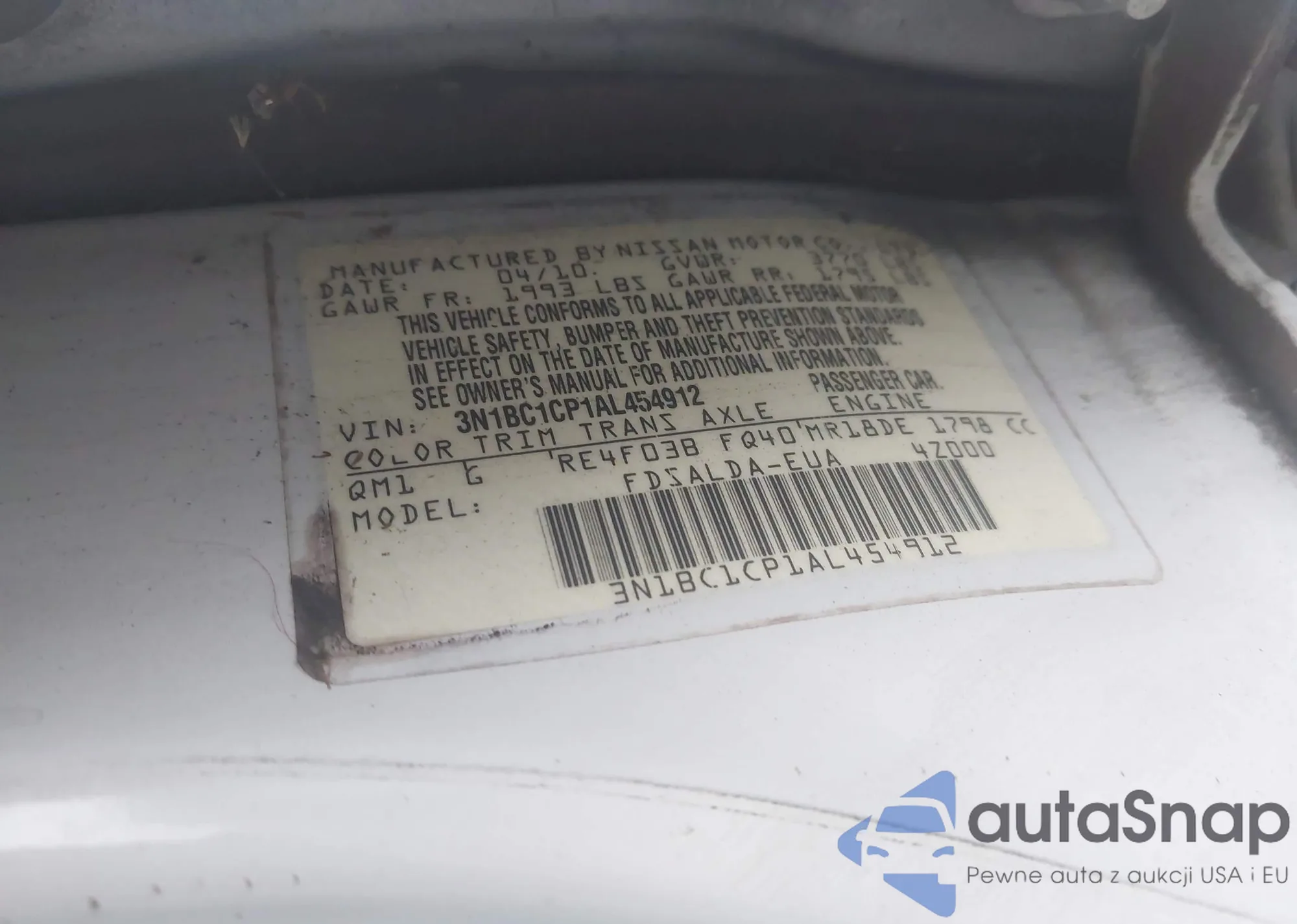 LOT: 43965835 VIN: 3N1BC1CP1AL454912