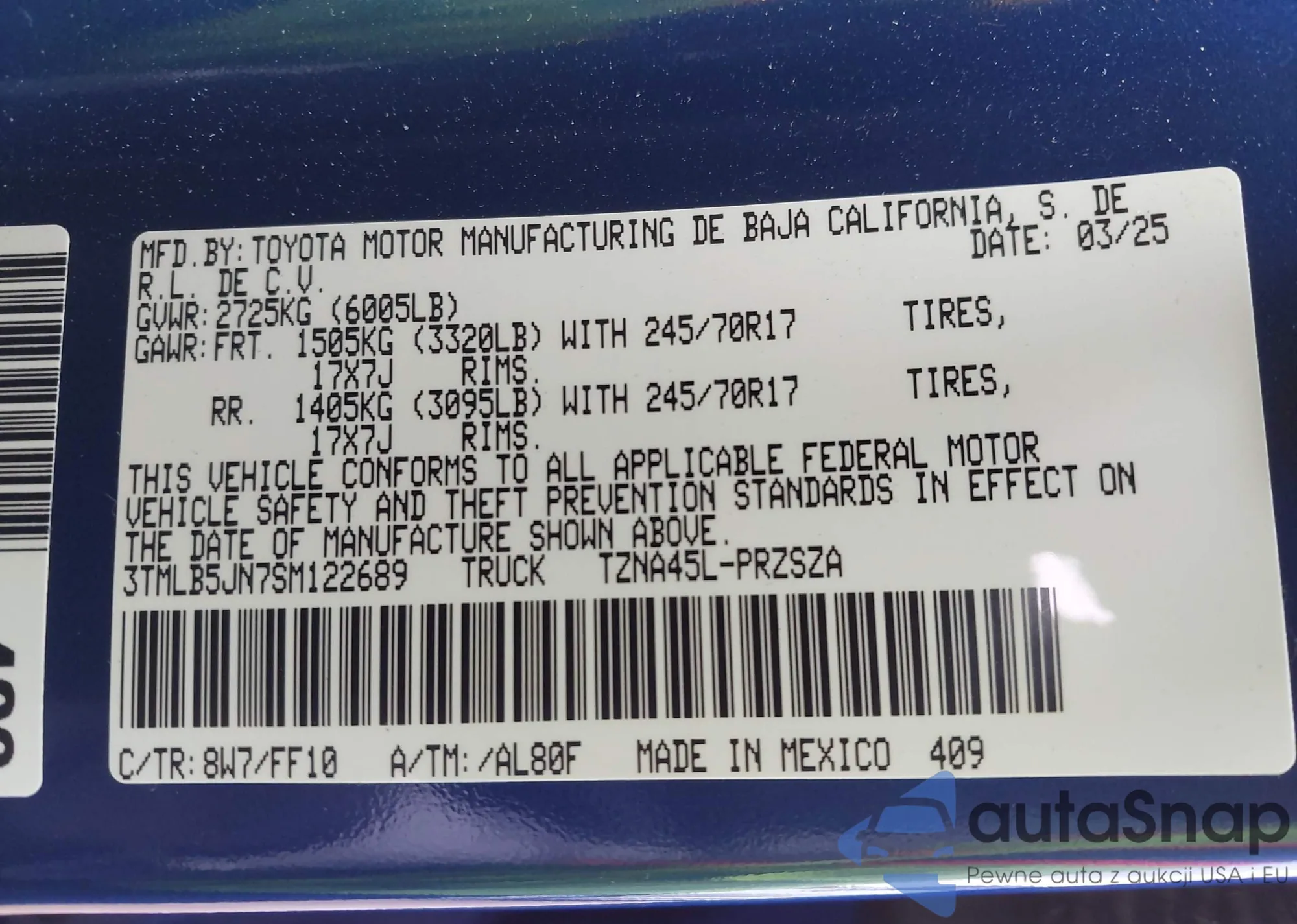 • VIN 3TMLB5JN7SM122689
