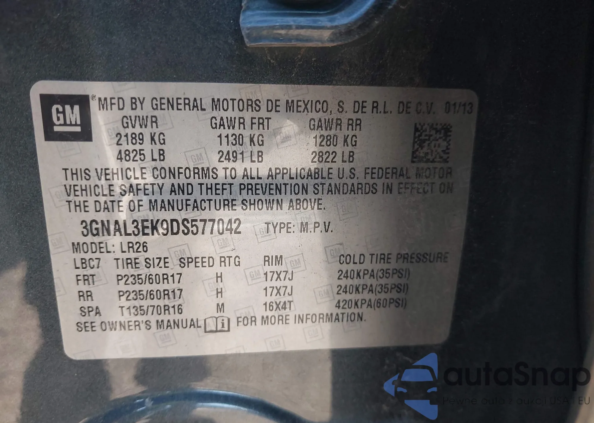 LOT: 43759959 VIN: 5TFMU4FN3DX011152