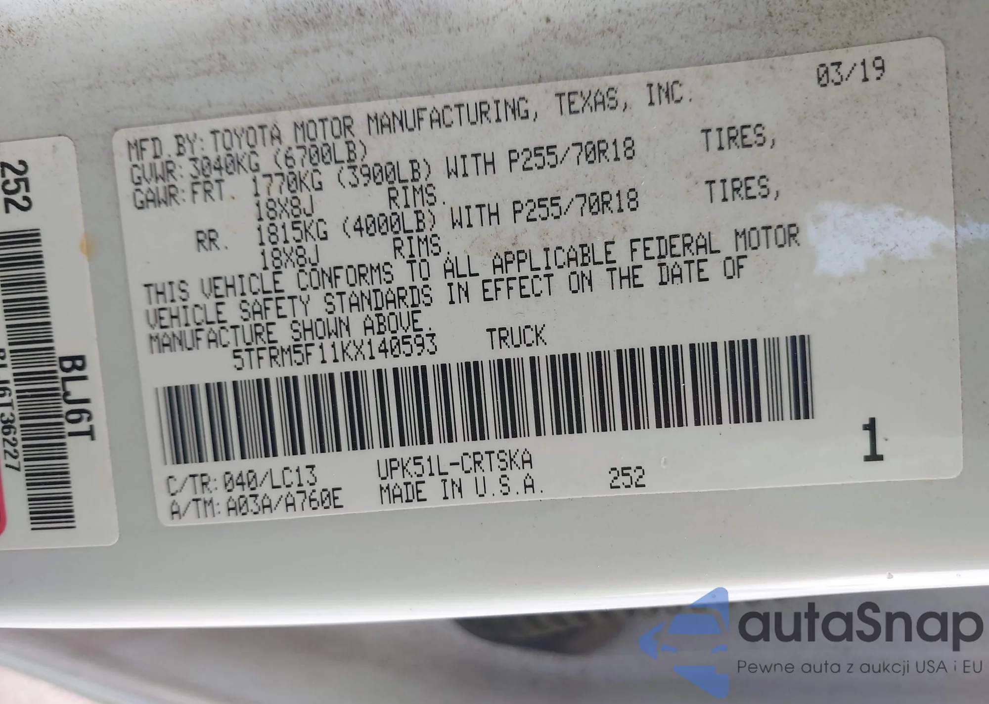 • VIN 5TFRM5F11KX140593