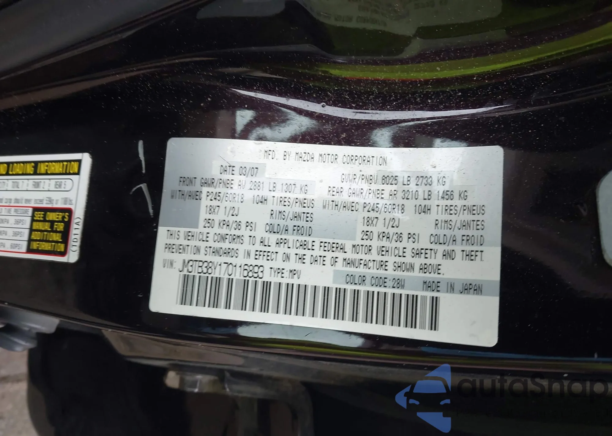 • VIN JM3TB38Y170116893