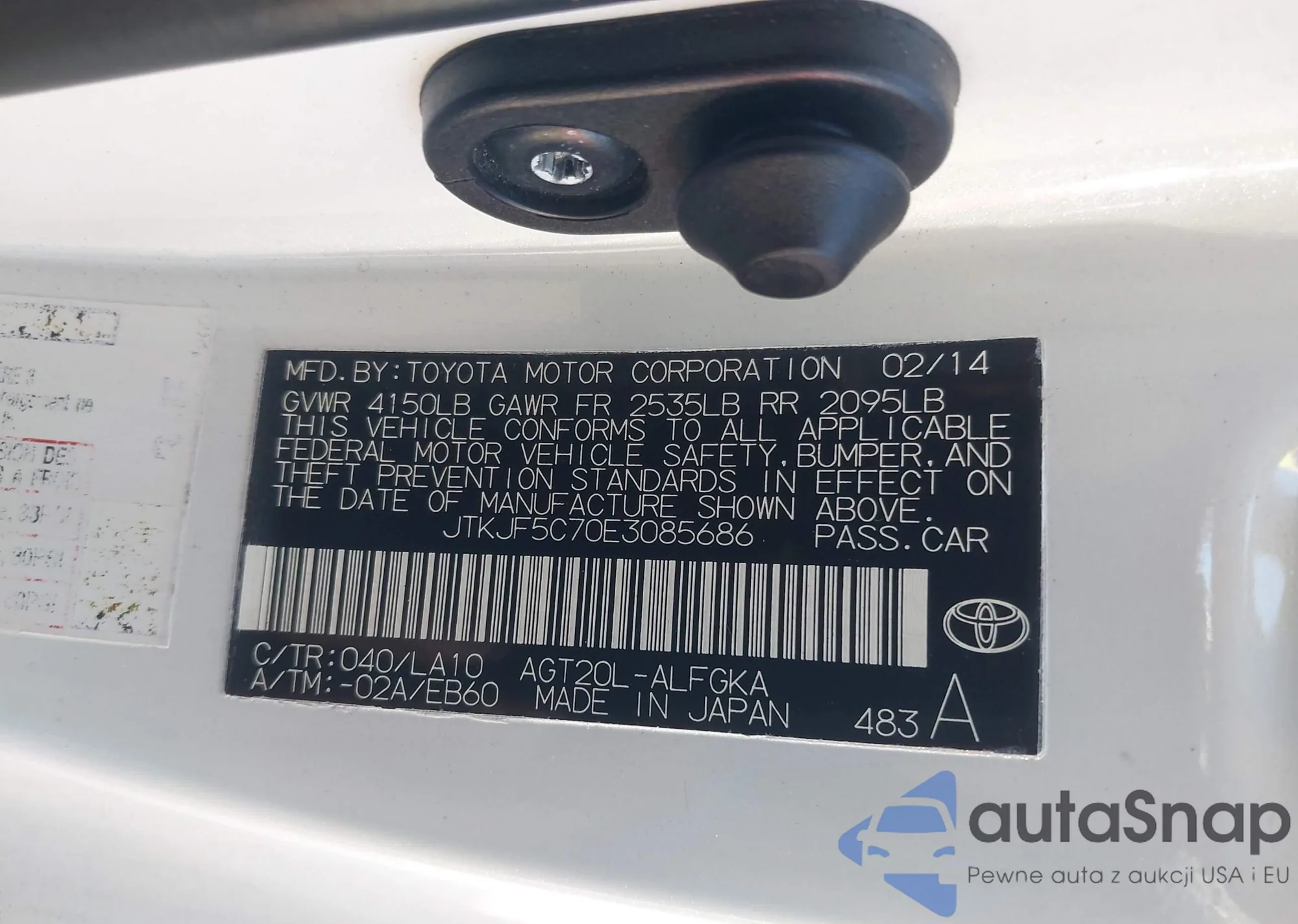 • VIN JTKJF5C70E3085686
