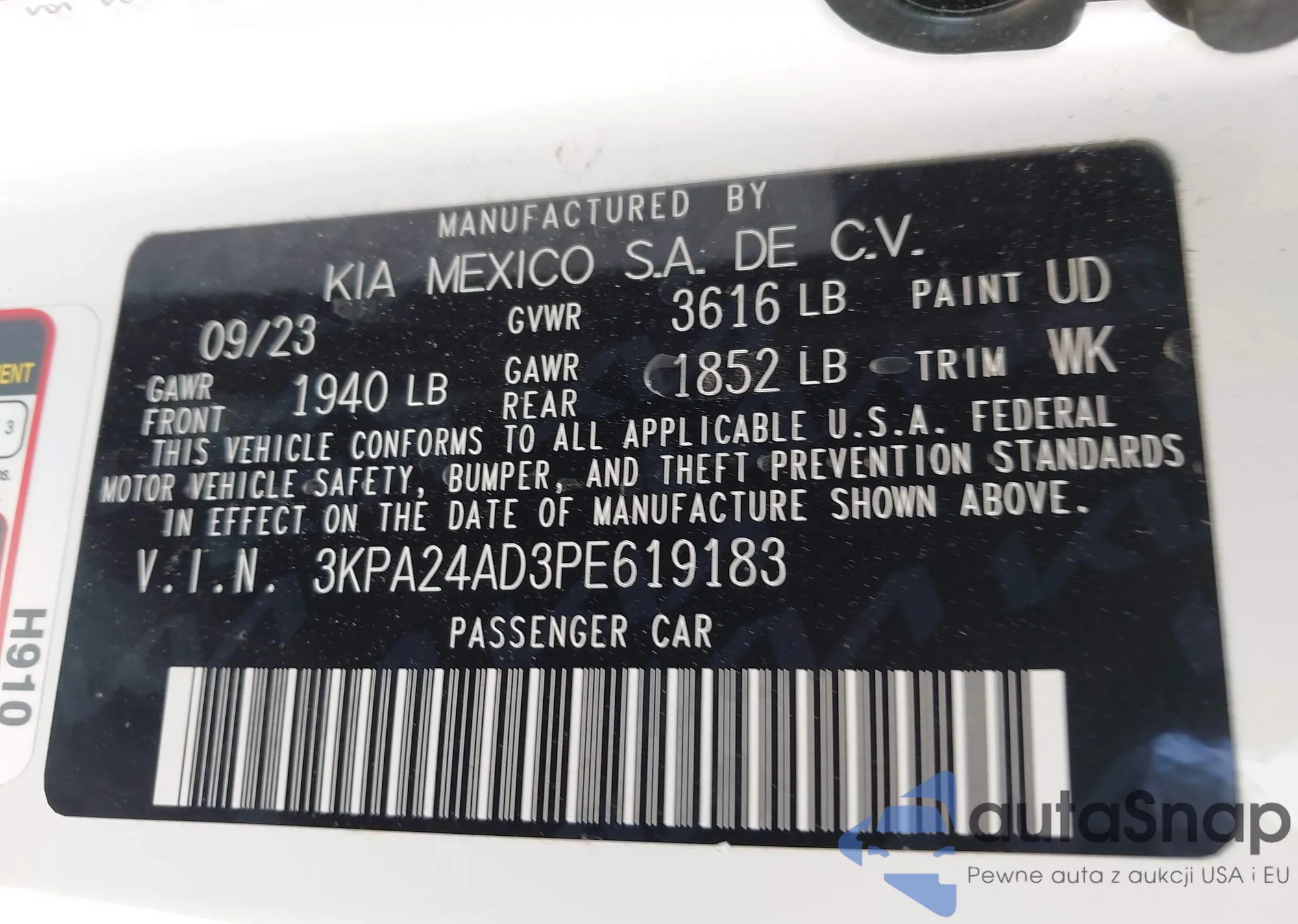 LOT: 43266757 VIN: 3KPA24AD3PE619183