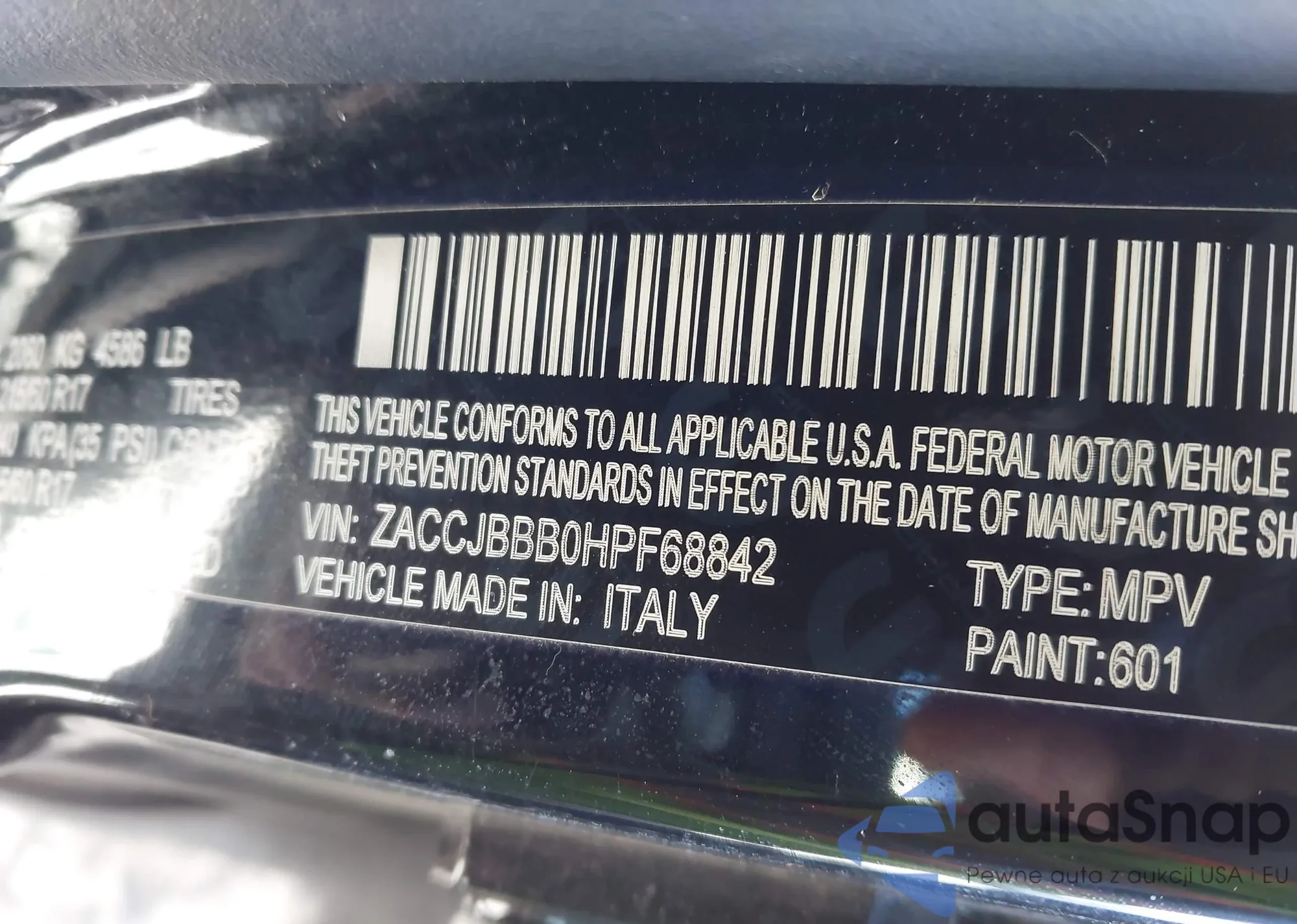 • VIN ZACCJBBB0HPF68842