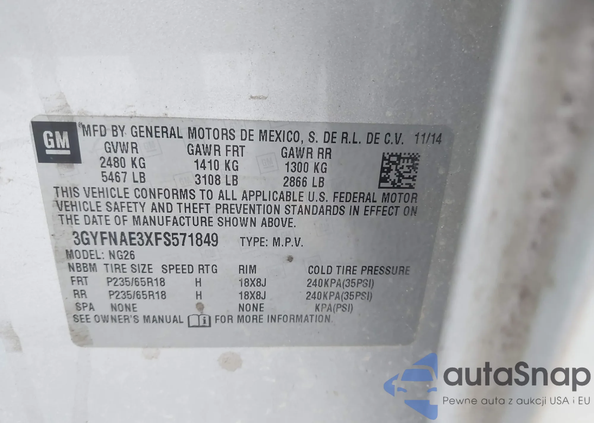 • VIN 3GYFNAE3XFS571849