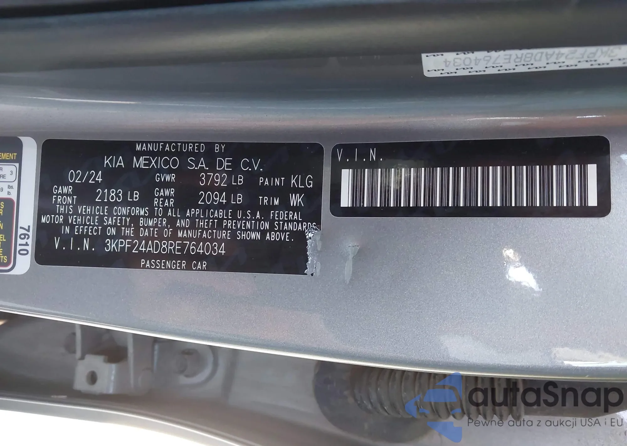 LOT: 43876935 VIN: 3KPF24AD3KE030245