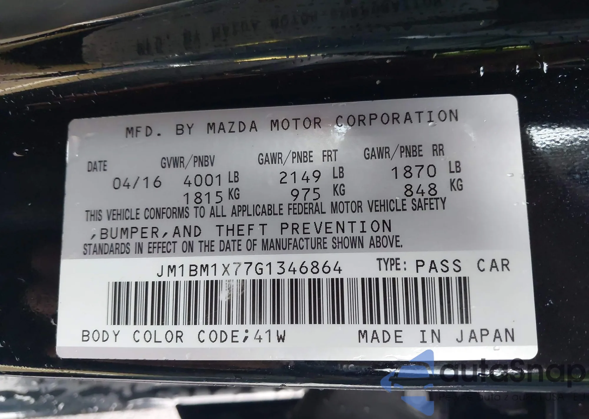 LOT: 43745111 VIN: JM1BM1X77G1346864