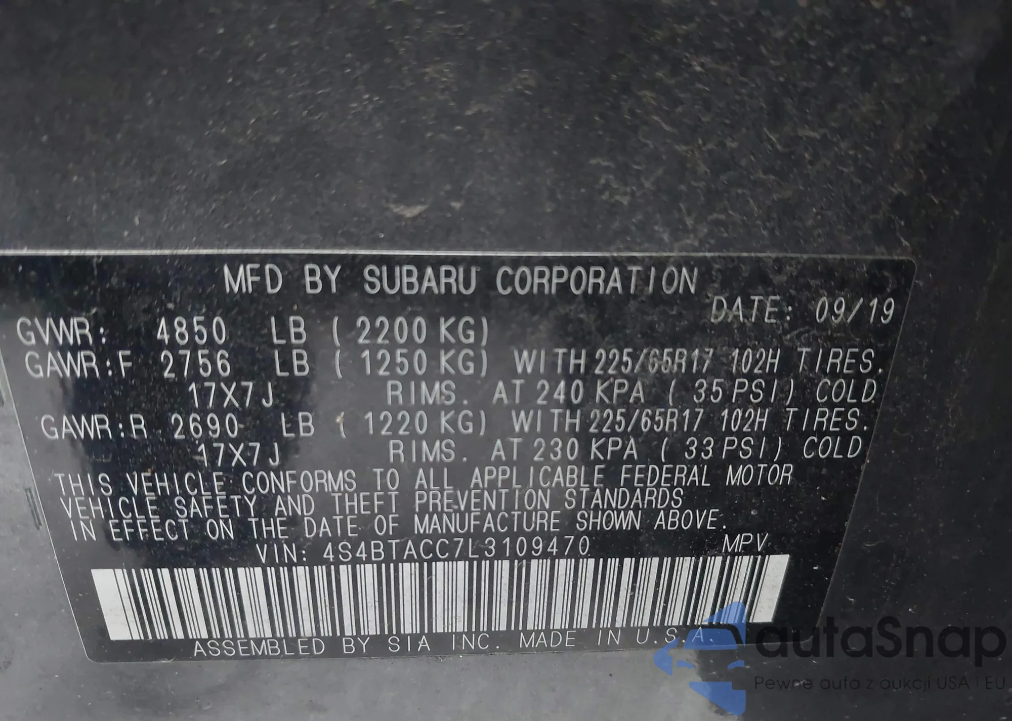 • VIN 4S4BTACC7L3109470