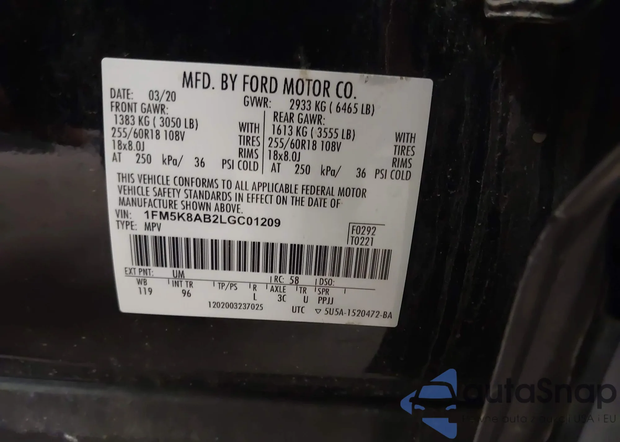 • VIN 1FM5K8AB2LGC01209