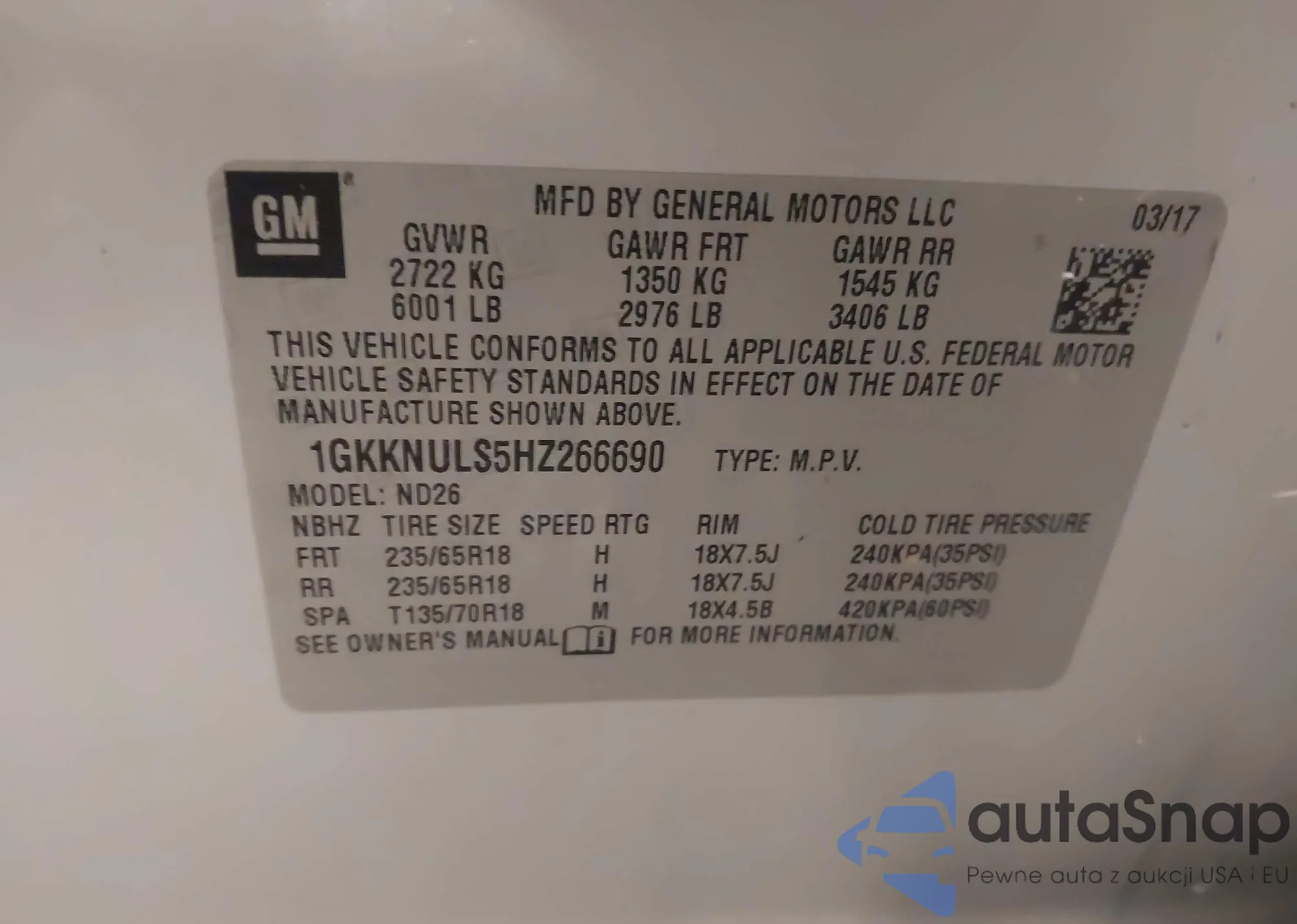 • VIN 1GKKNULS5HZ266690