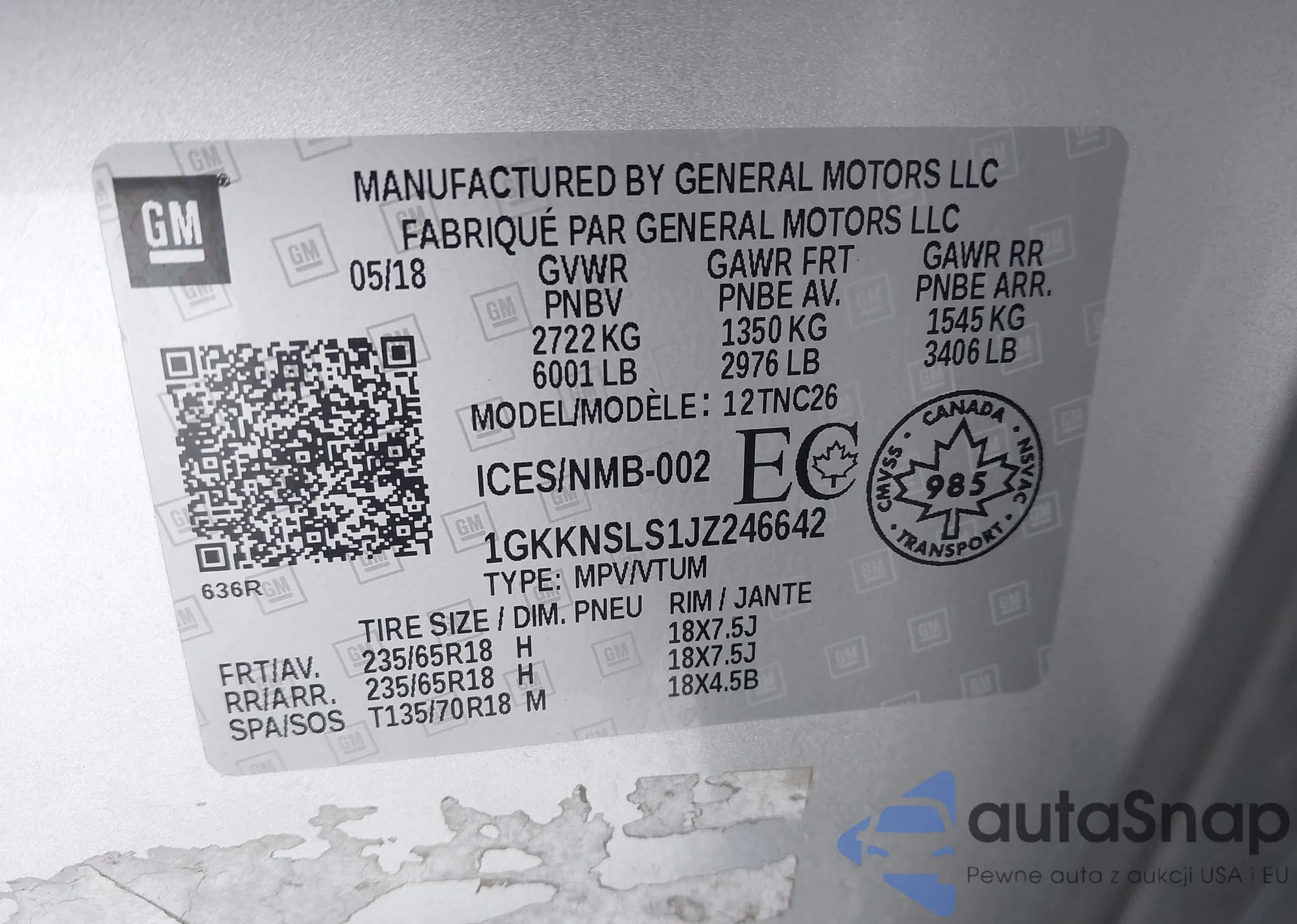 LOT: 43810041 VIN: 1GKKNSLS1JZ246642