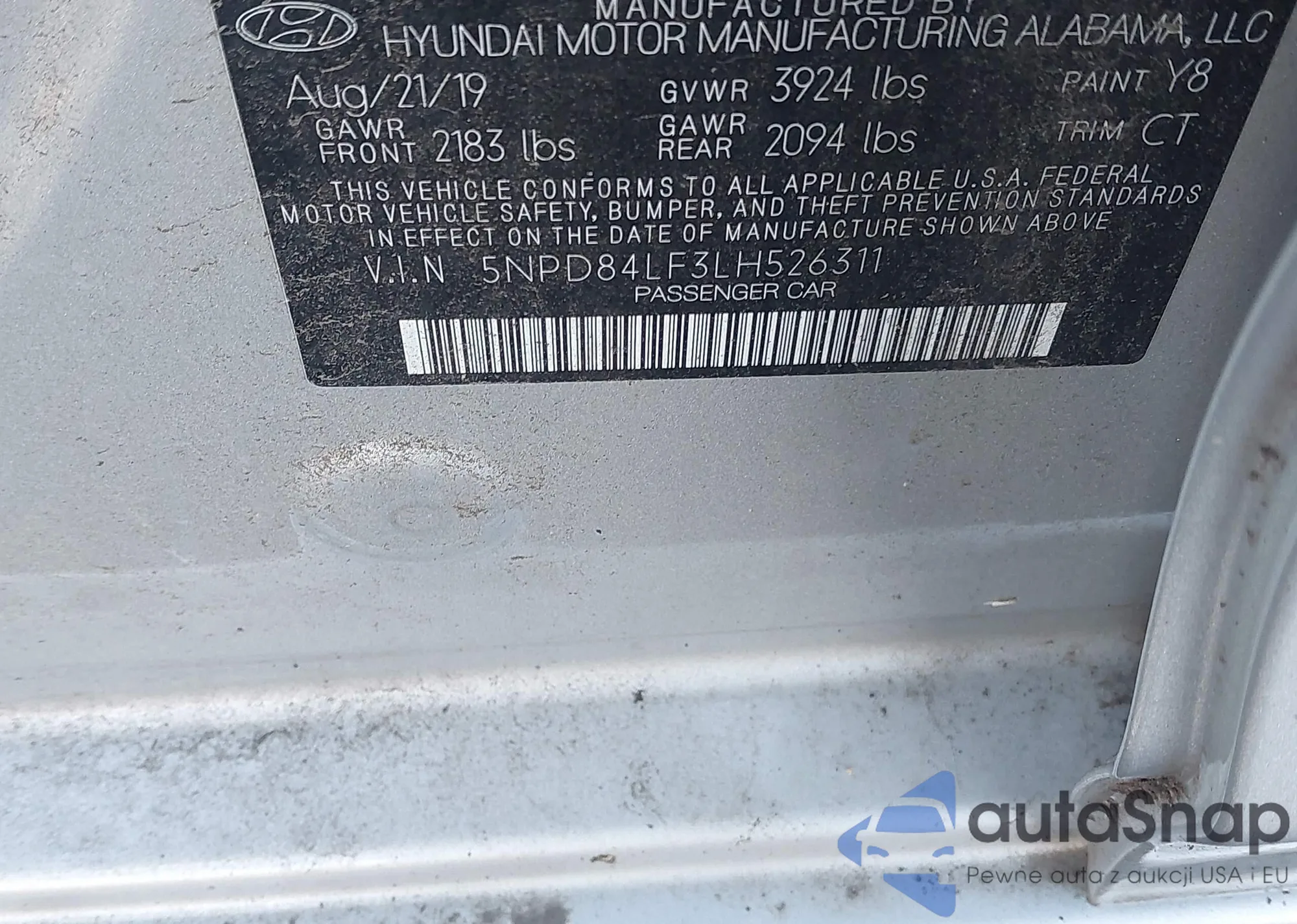 • VIN 5NPD84LF3LH526311