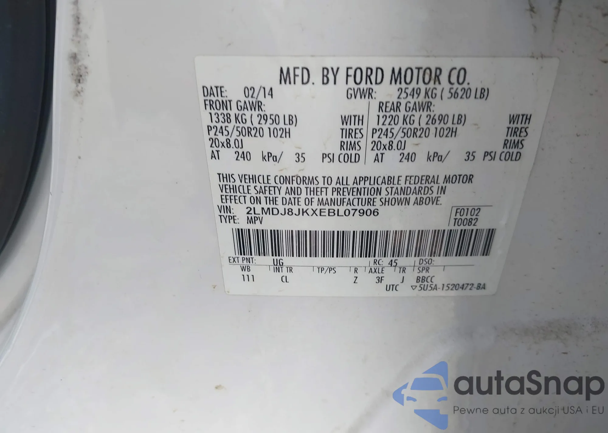 • VIN 2LMDJ8JKXEBL07906