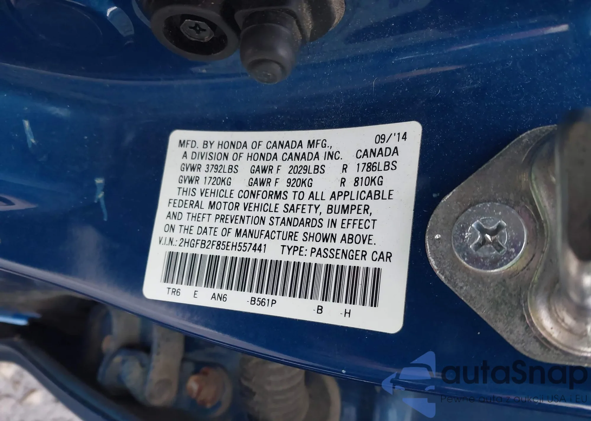 • VIN 2HGFB2F85EH557441