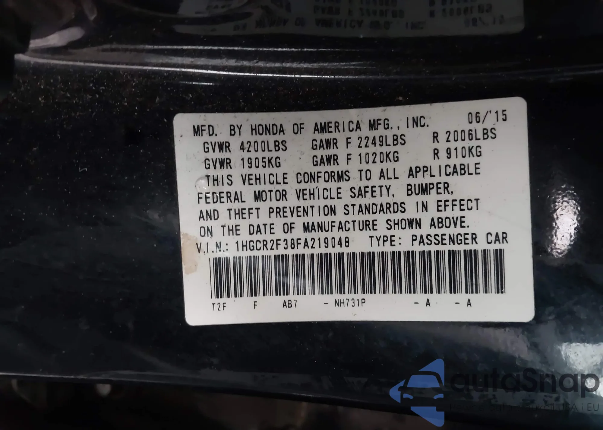 • VIN 1HGCR2F38FA219048
