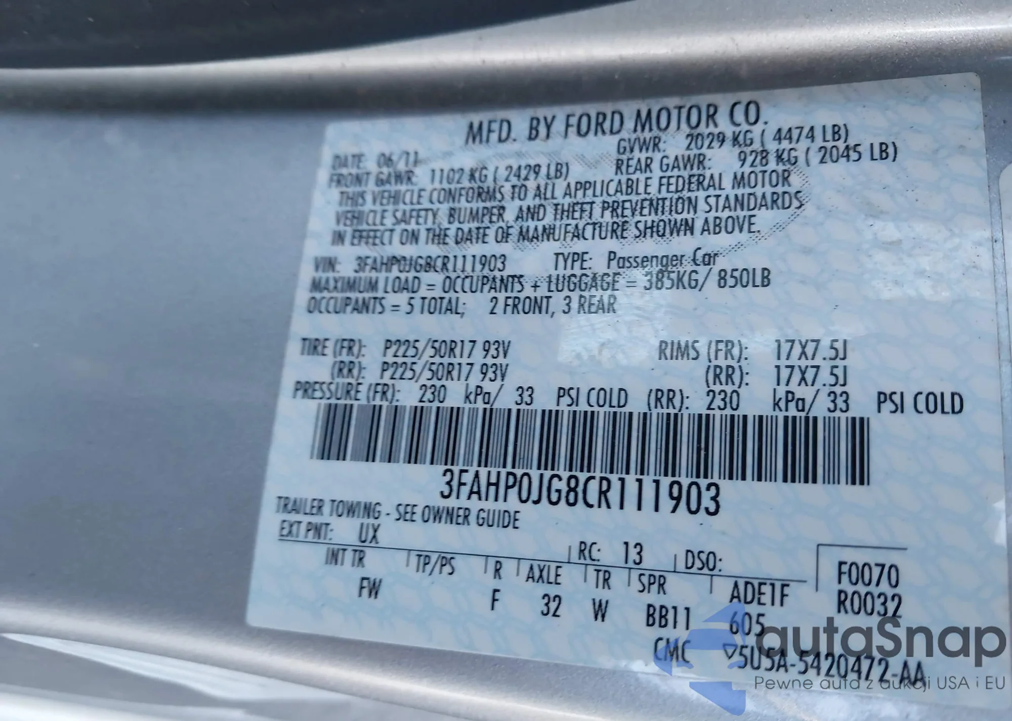• VIN WAUAFAFL8BN029386