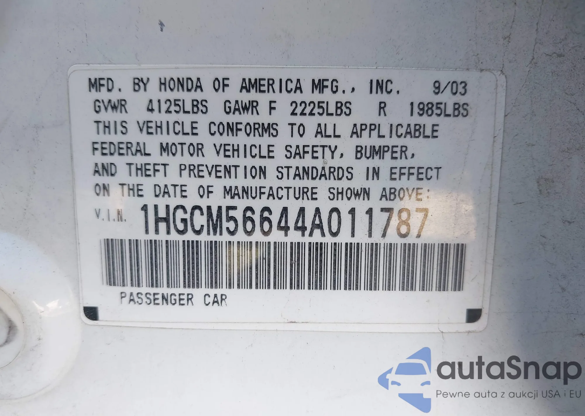 LOT: 43620321 VIN: 5UX13EU06S9Z58236