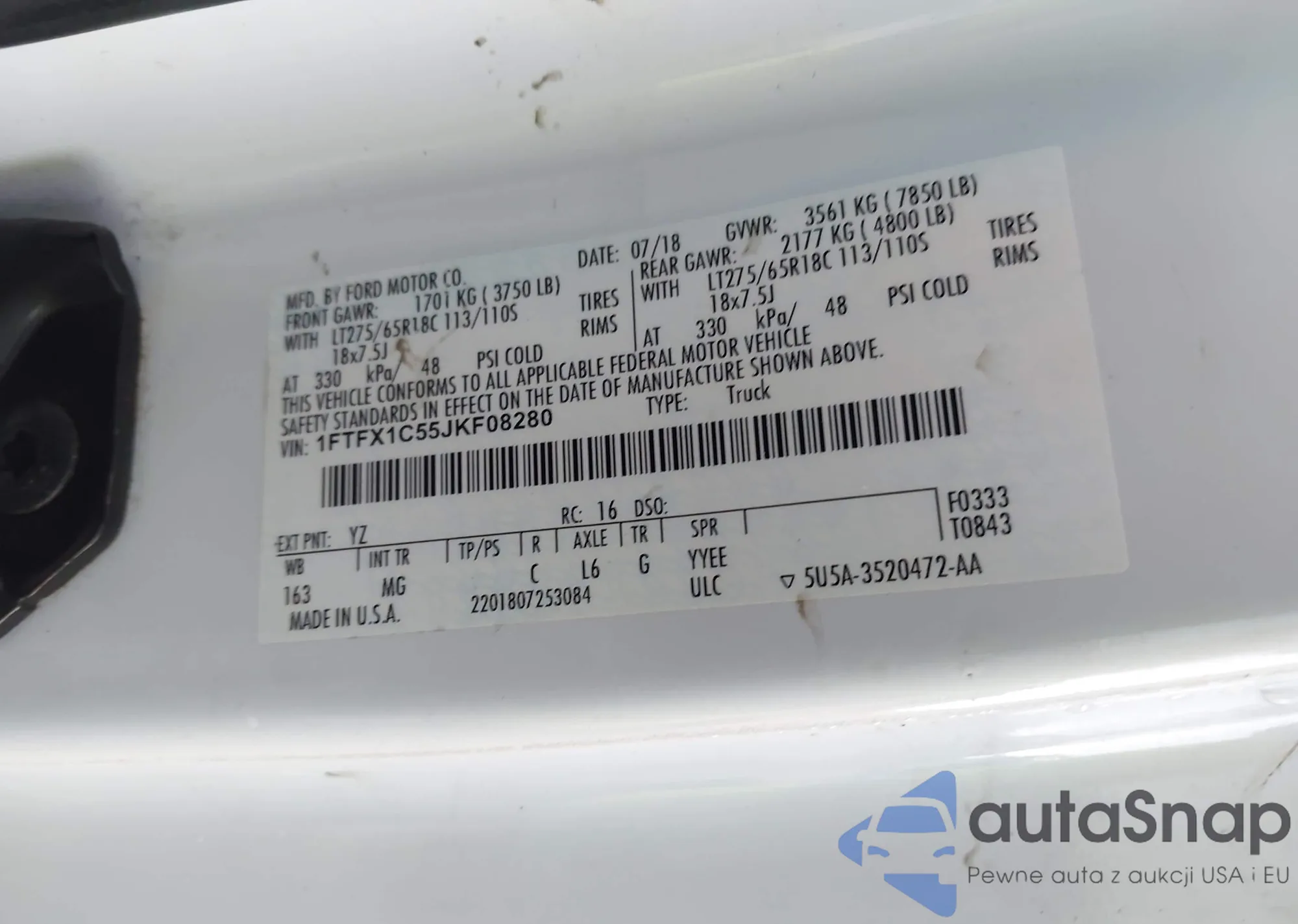 LOT: 43480077 VIN: 1FTFX1C55JKF08280