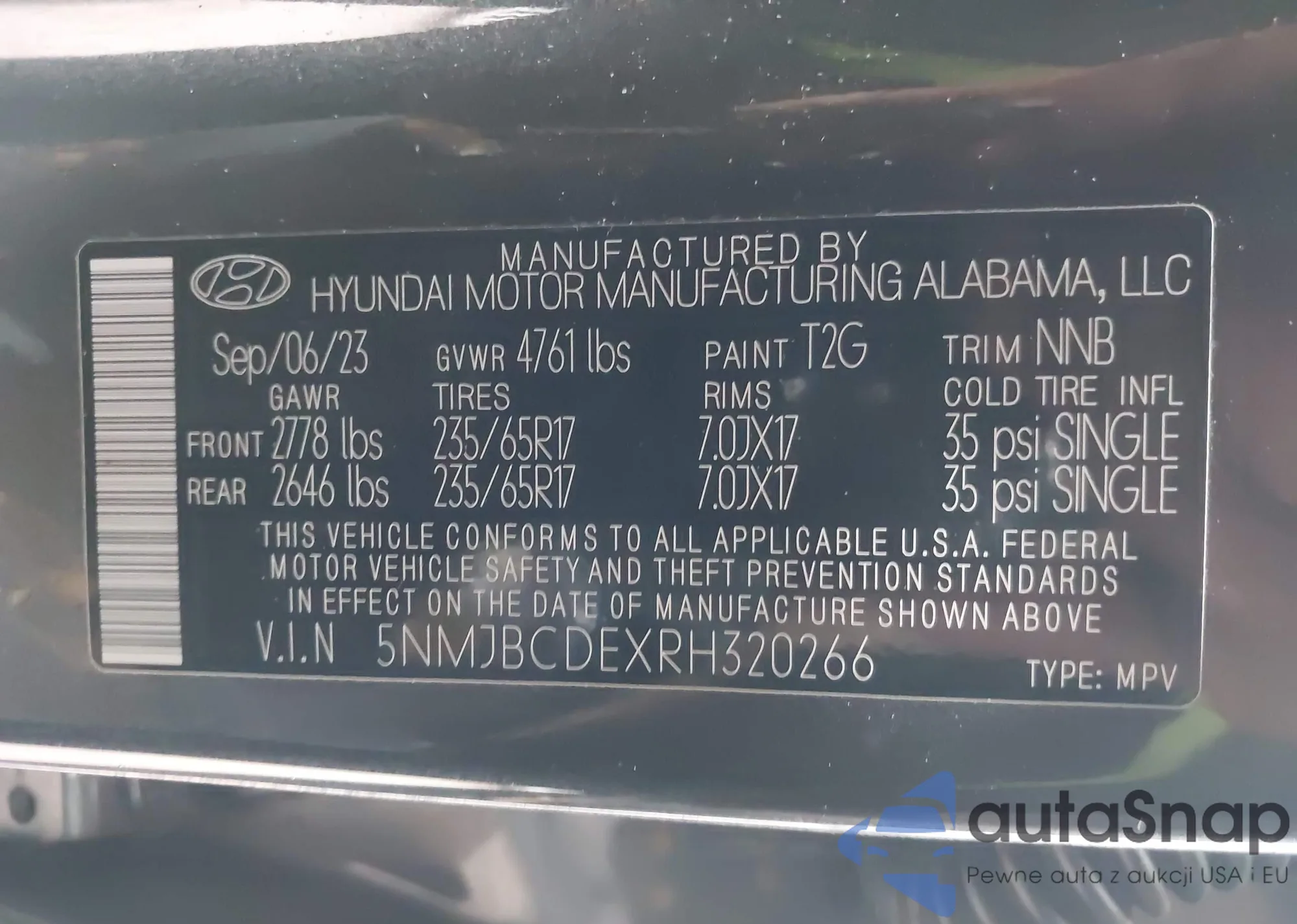 • VIN 5NMJBCDEXRH320266