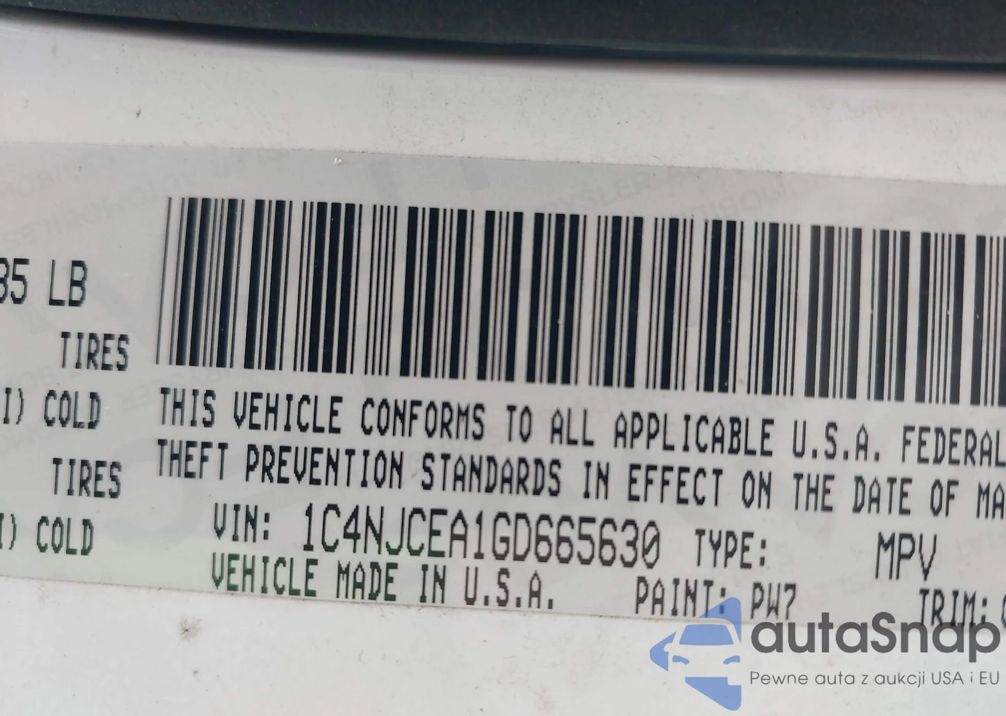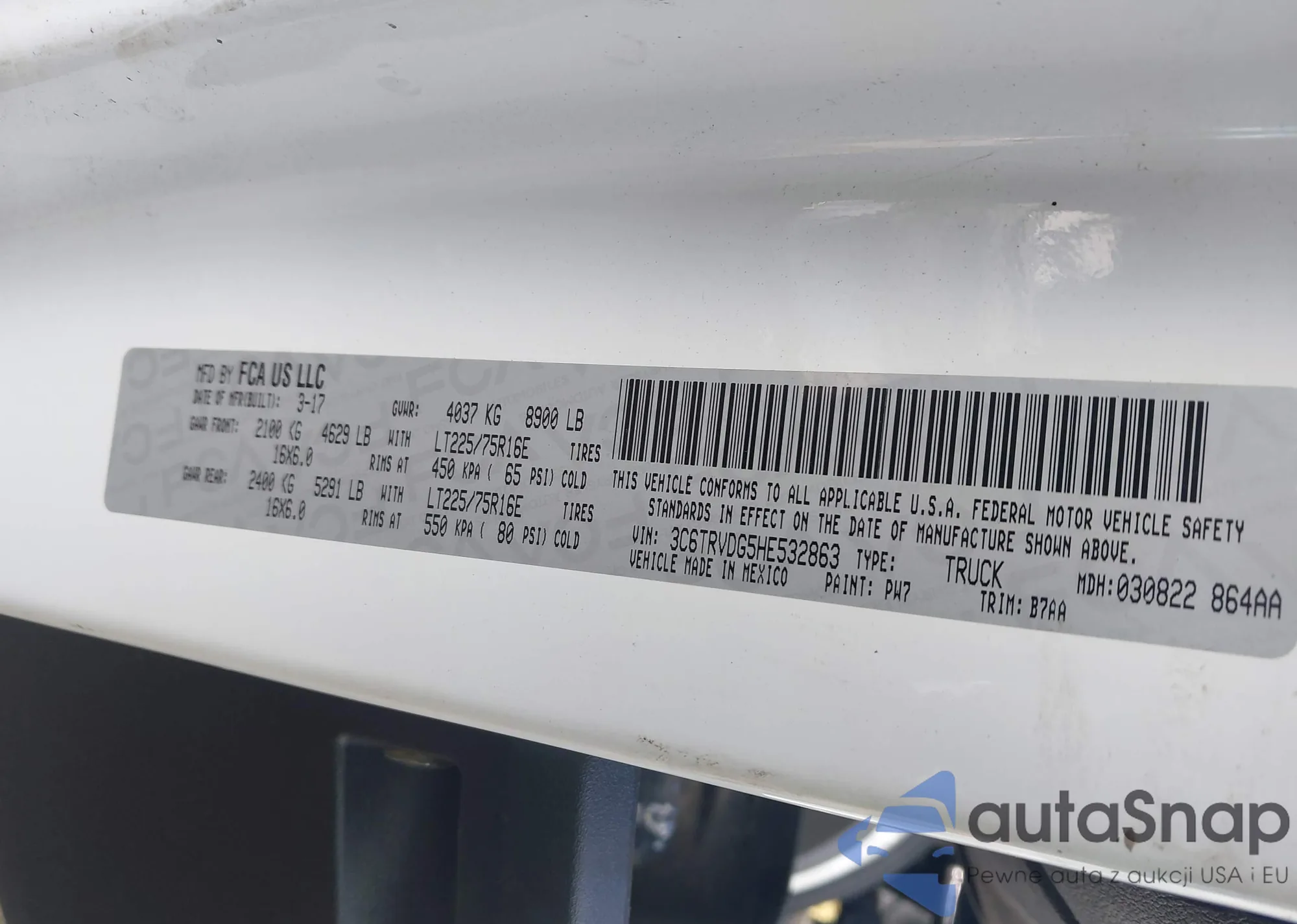 • VIN 3C6TRVDG5HE532863