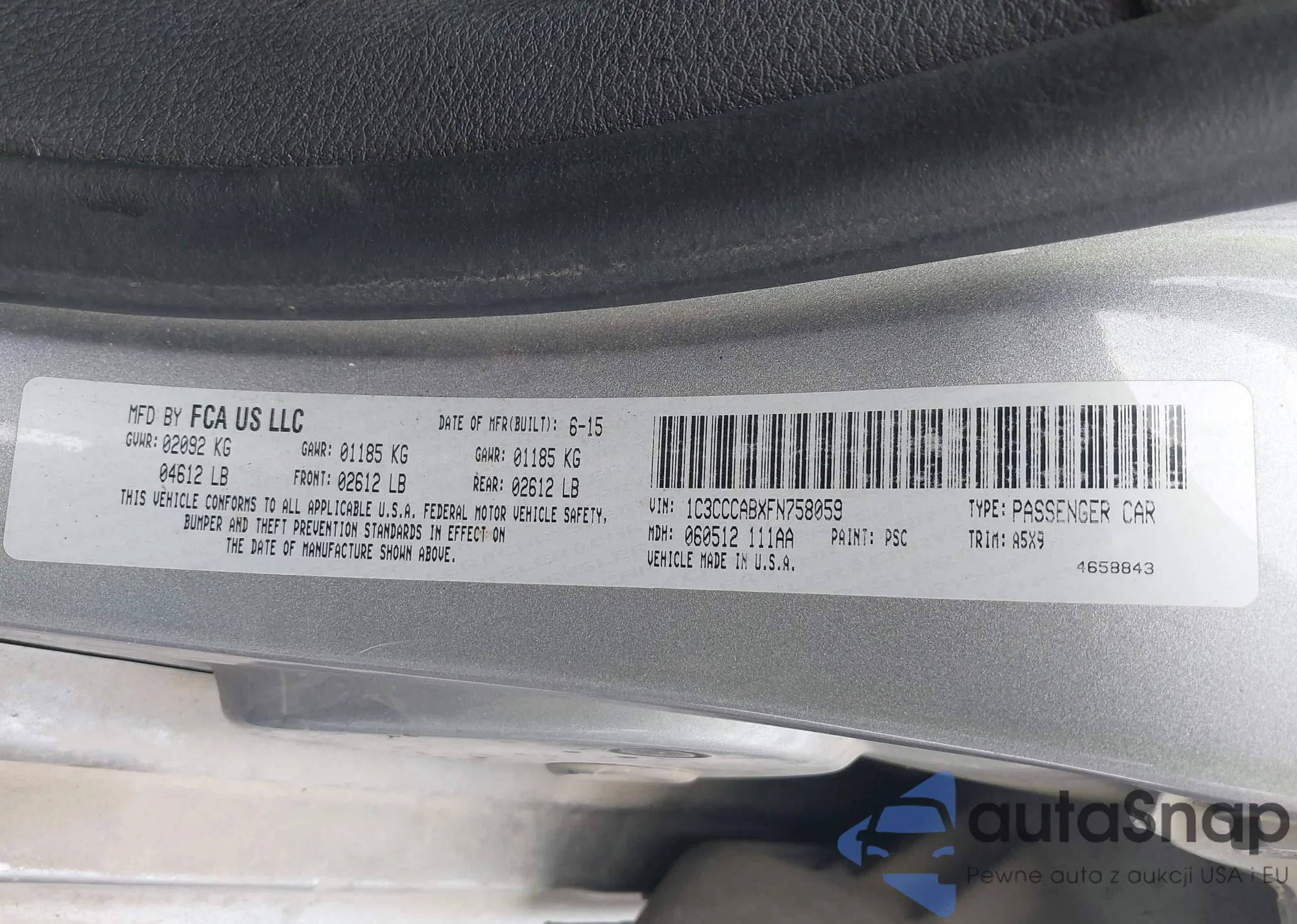 LOT: 43456302 VIN: 1C3CCCABXFN758059