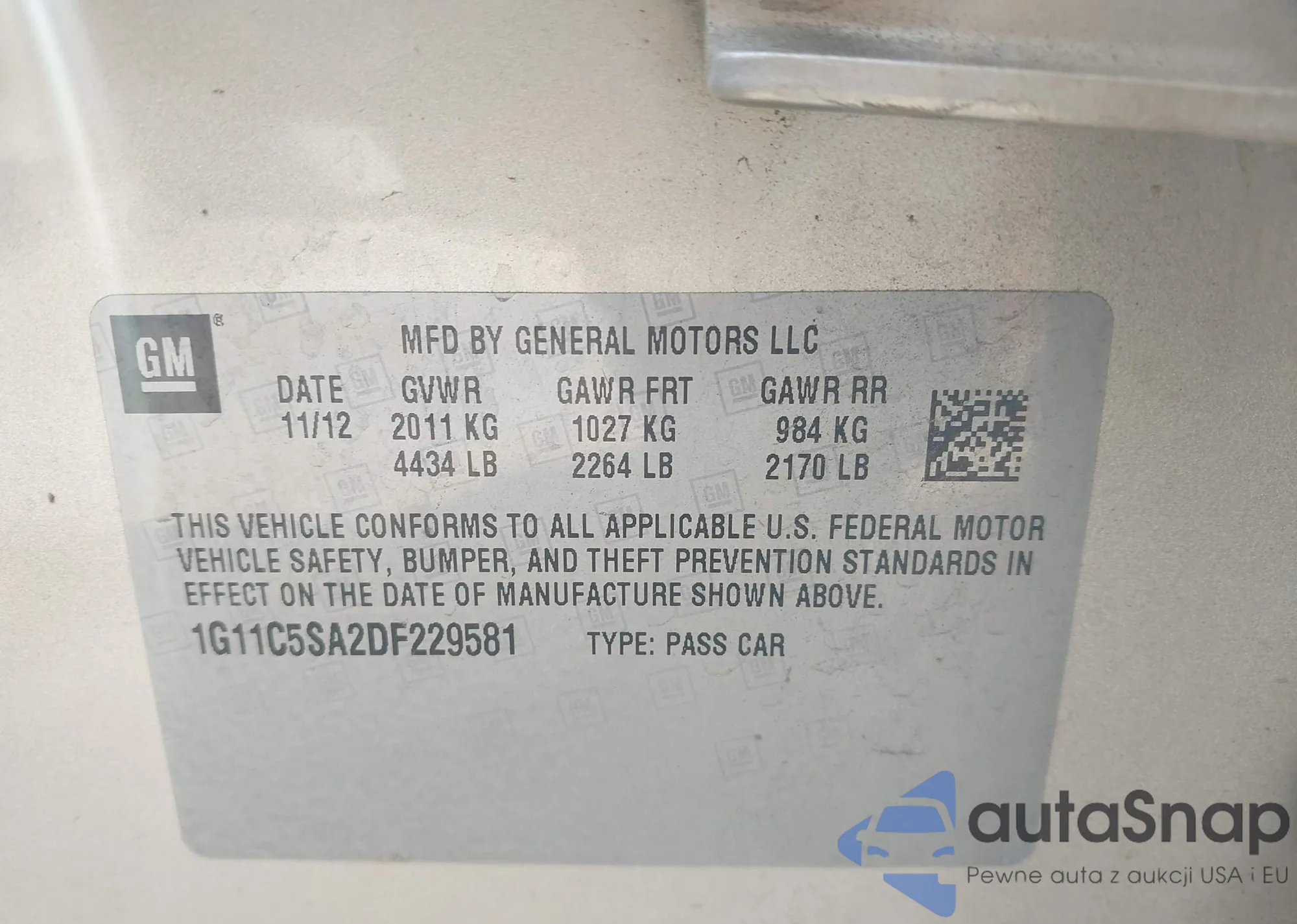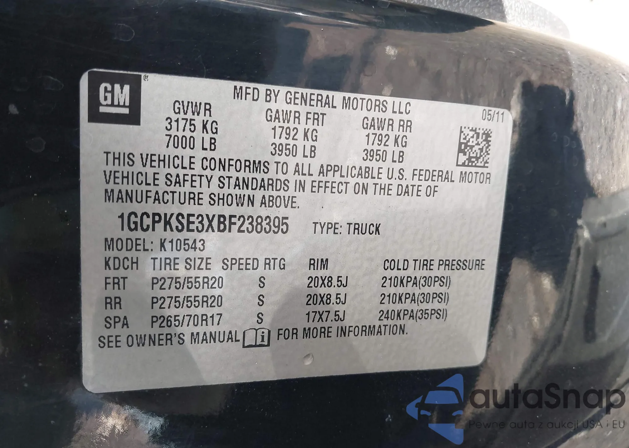 LOT: 43535314 VIN: 1GCPKSE3XBF238395