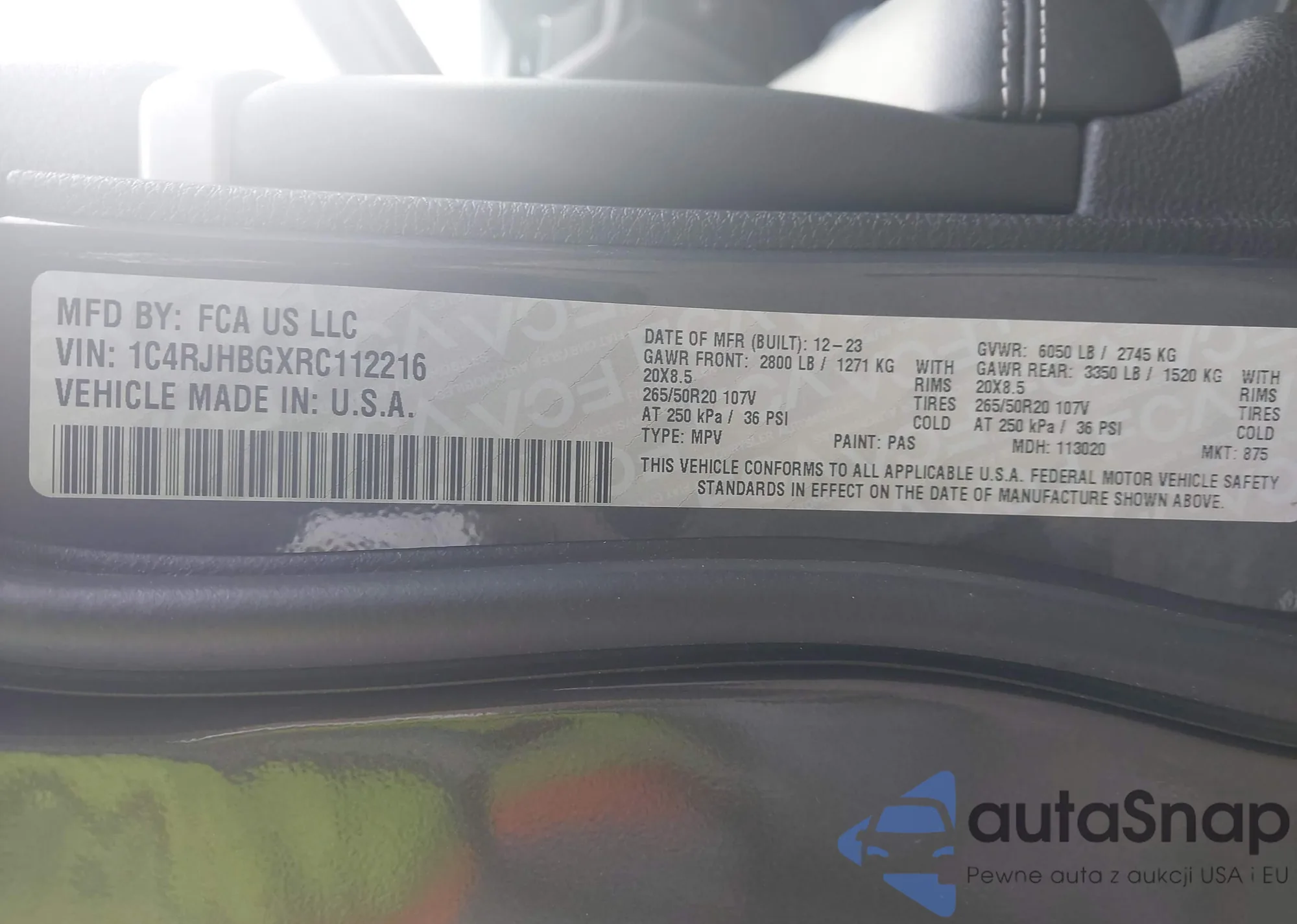 LOT: 43772527 VIN: 1C4RJHBGXRC112216