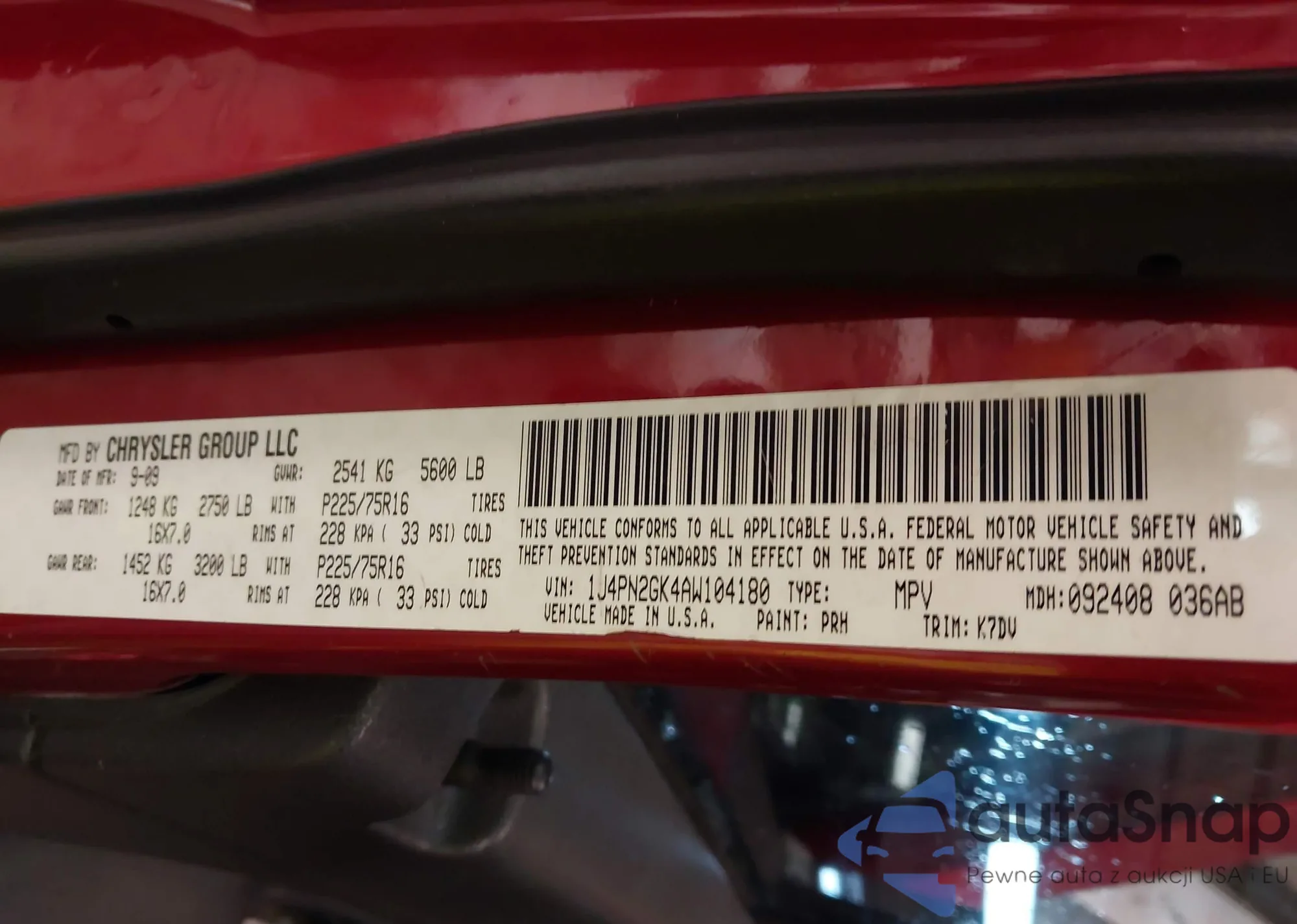 • VIN 1J4PN2GK4AW104180