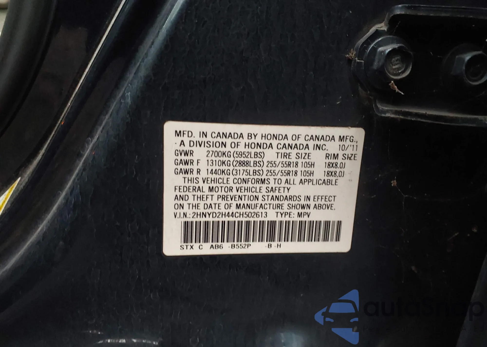• VIN 2HNYD2H44CH502613
