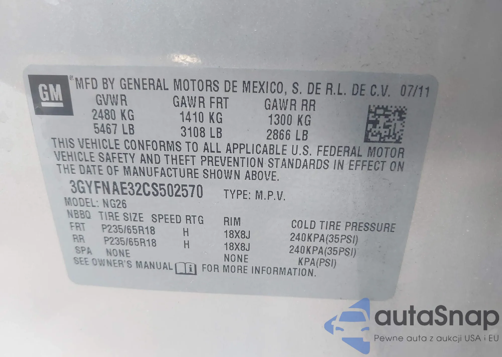 • VIN 3GYFNAE32CS502570