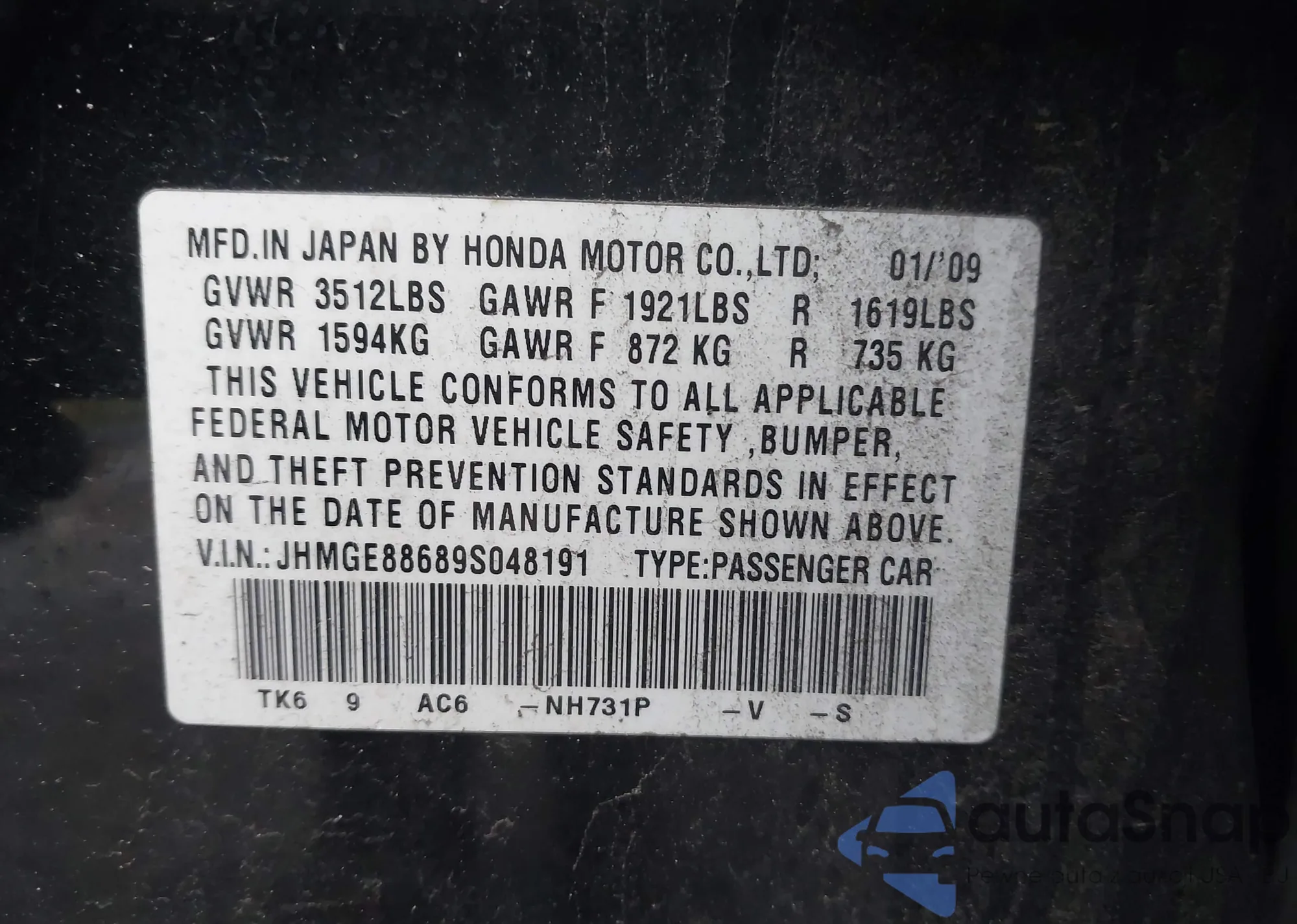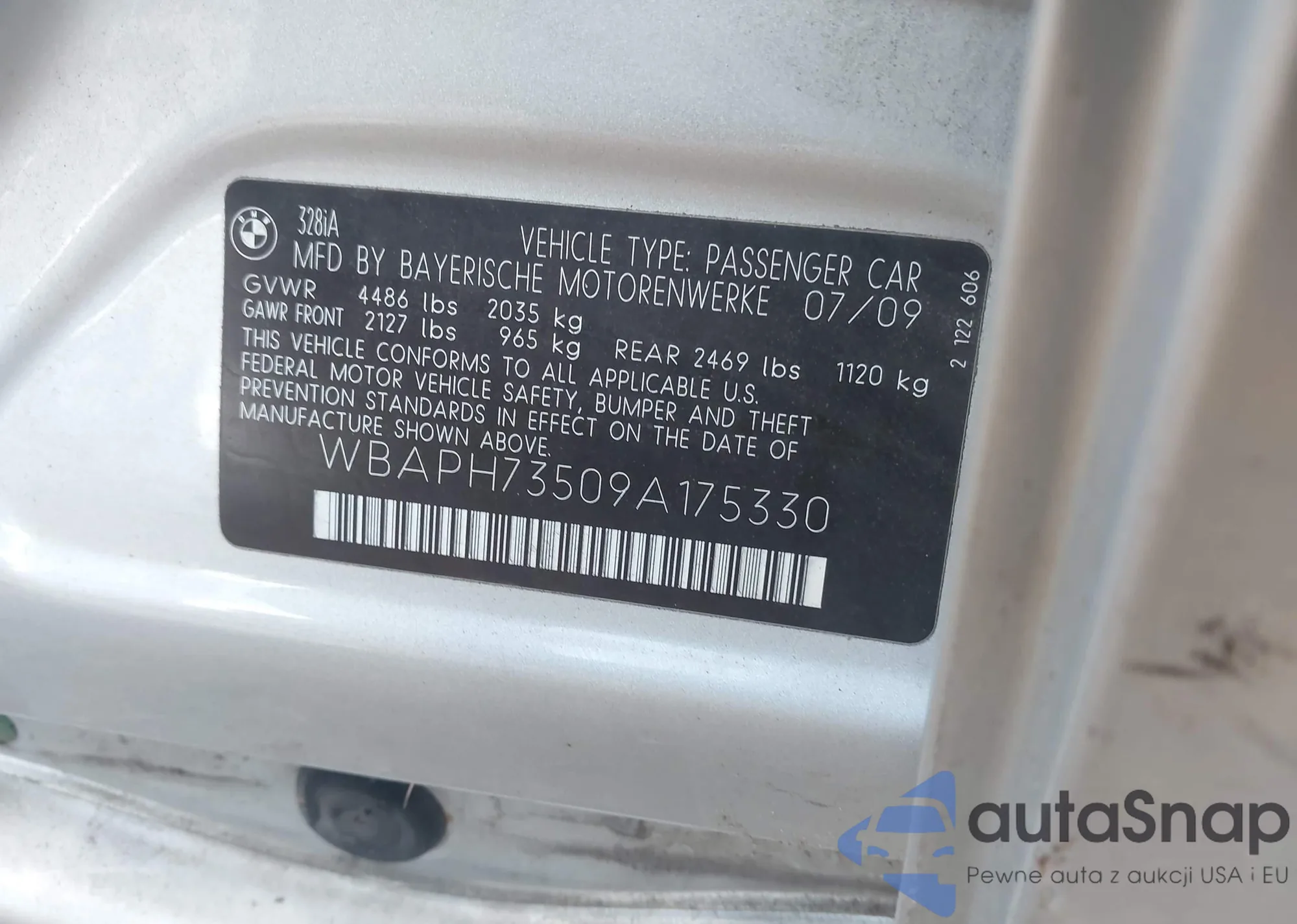LOT: 43665177 VIN: WBAPH73509A175330