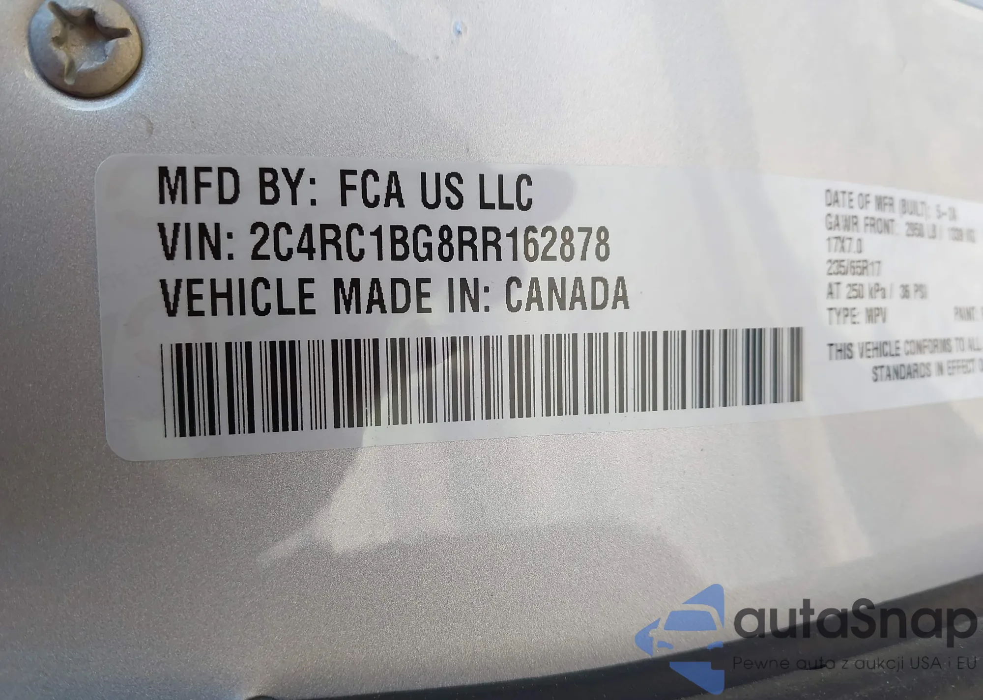 • VIN 2C4RC1BG8RR162878