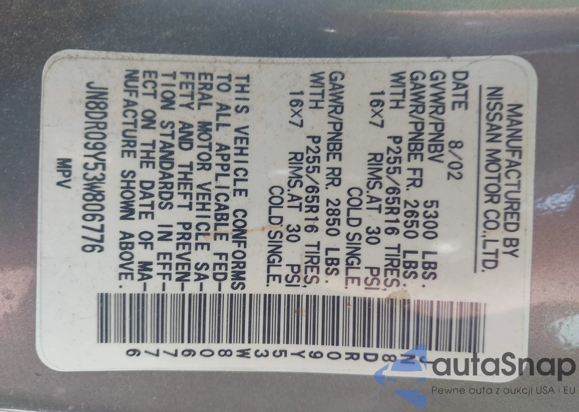 • VIN JN8DR09Y53W806776