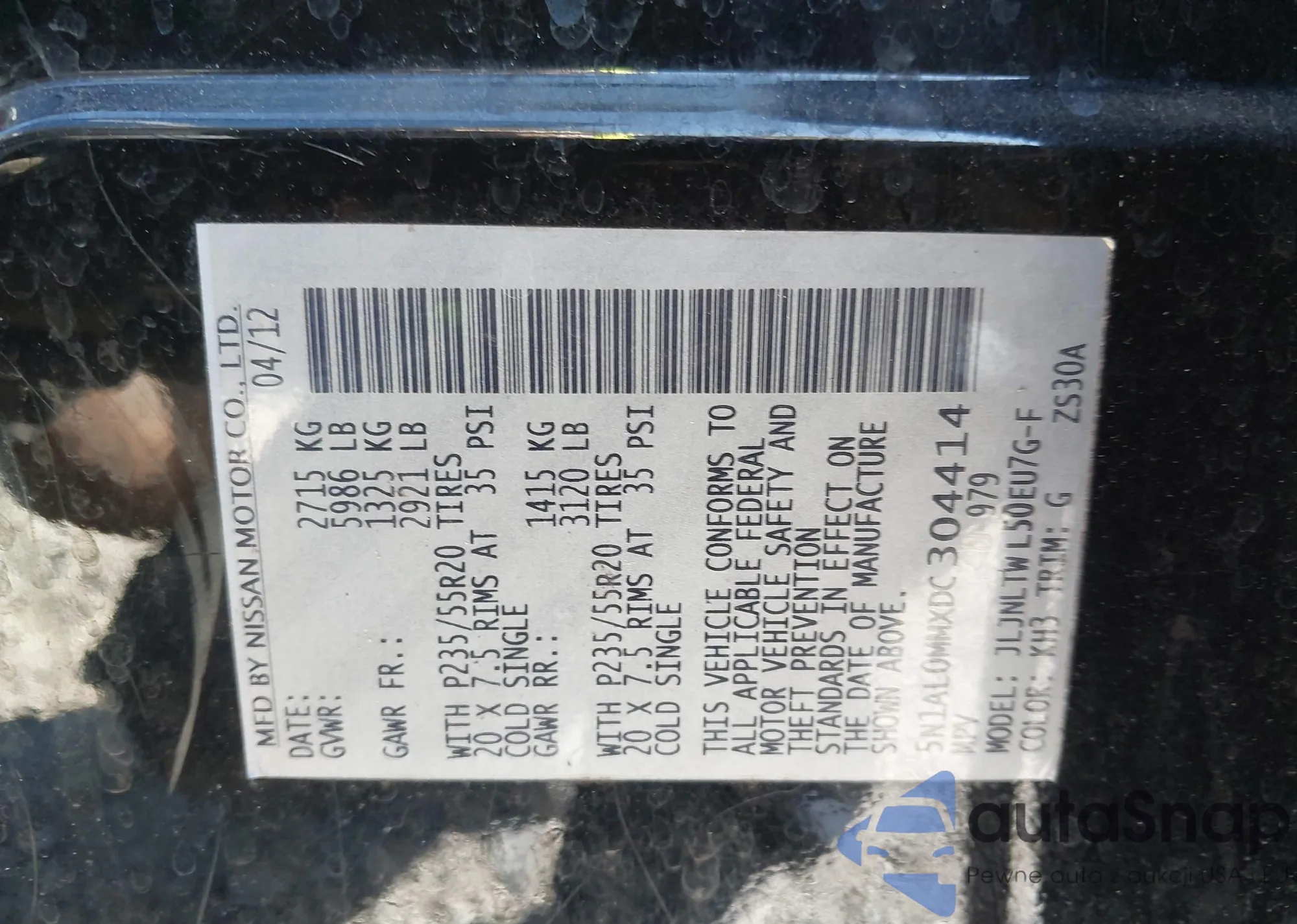 LOT: 43732751 VIN: 5N1AL0MMXDC304414