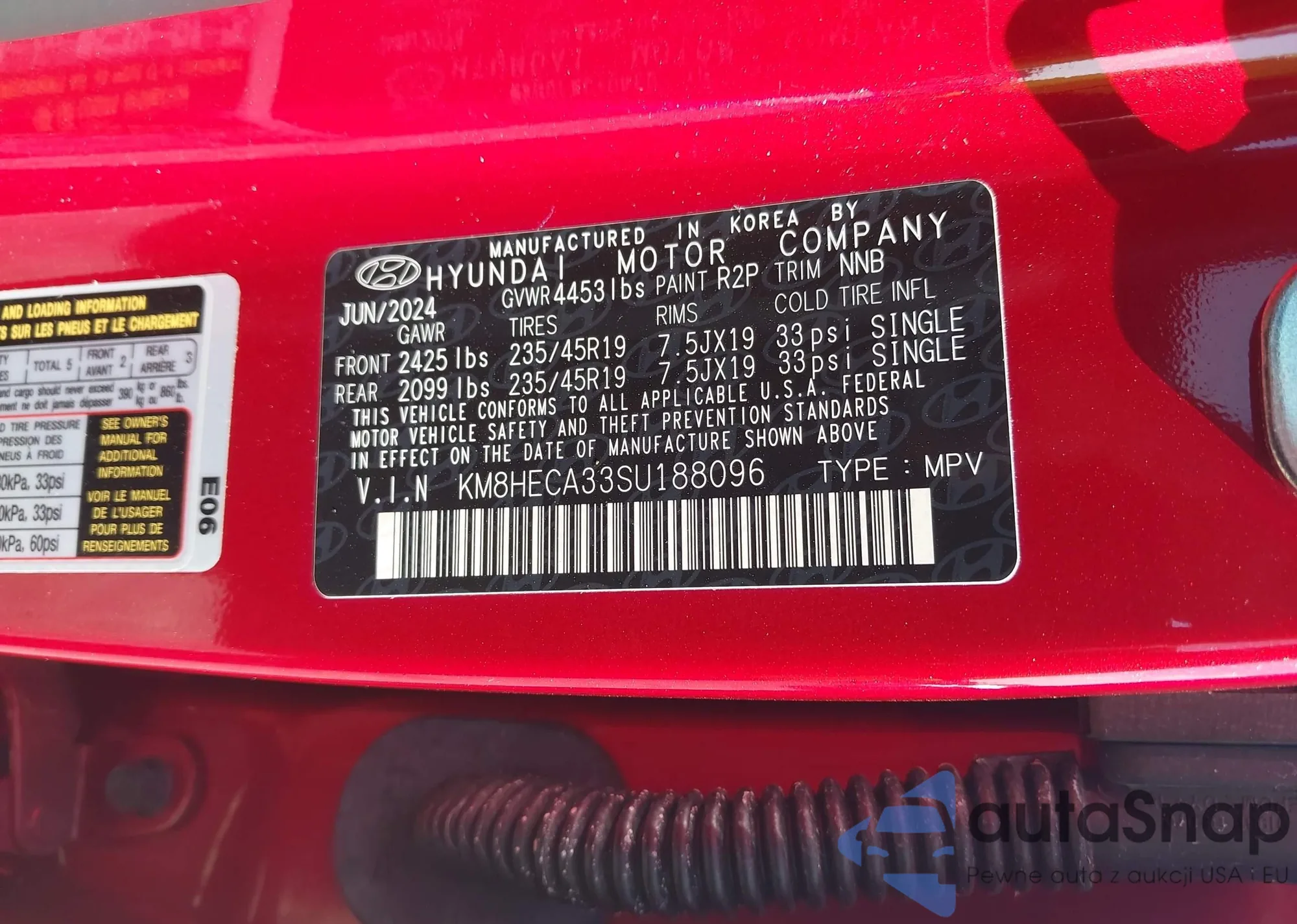LOT: 43741340 VIN: KM8HECA33SU188096