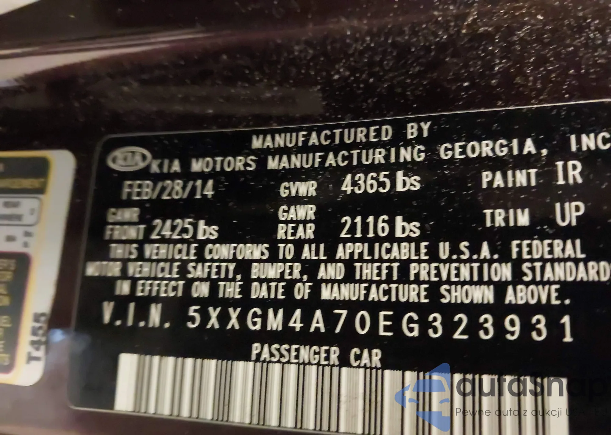 • VIN 5XXGM4A70EG323931