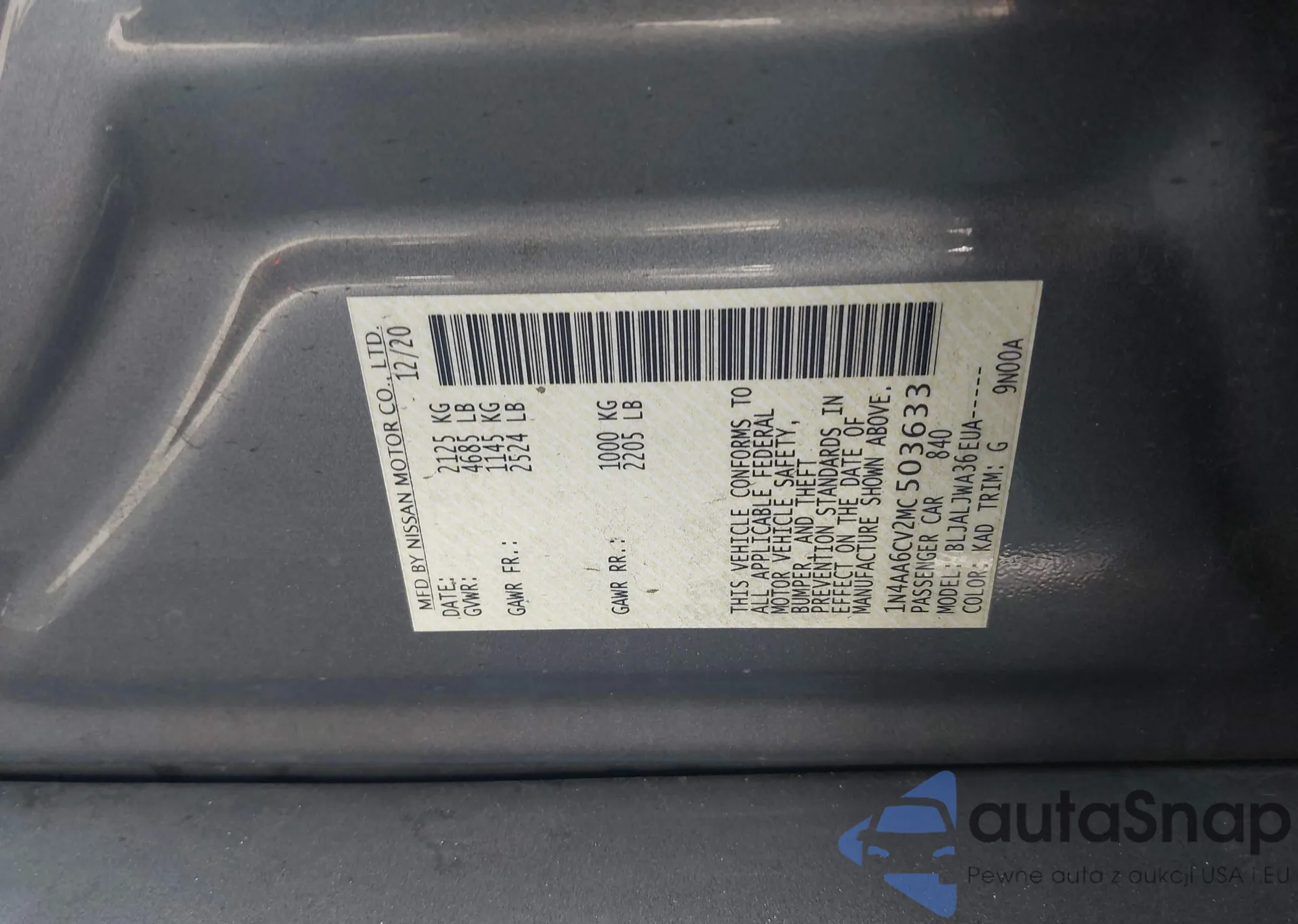 • VIN 1N4AA6CV2MC503633