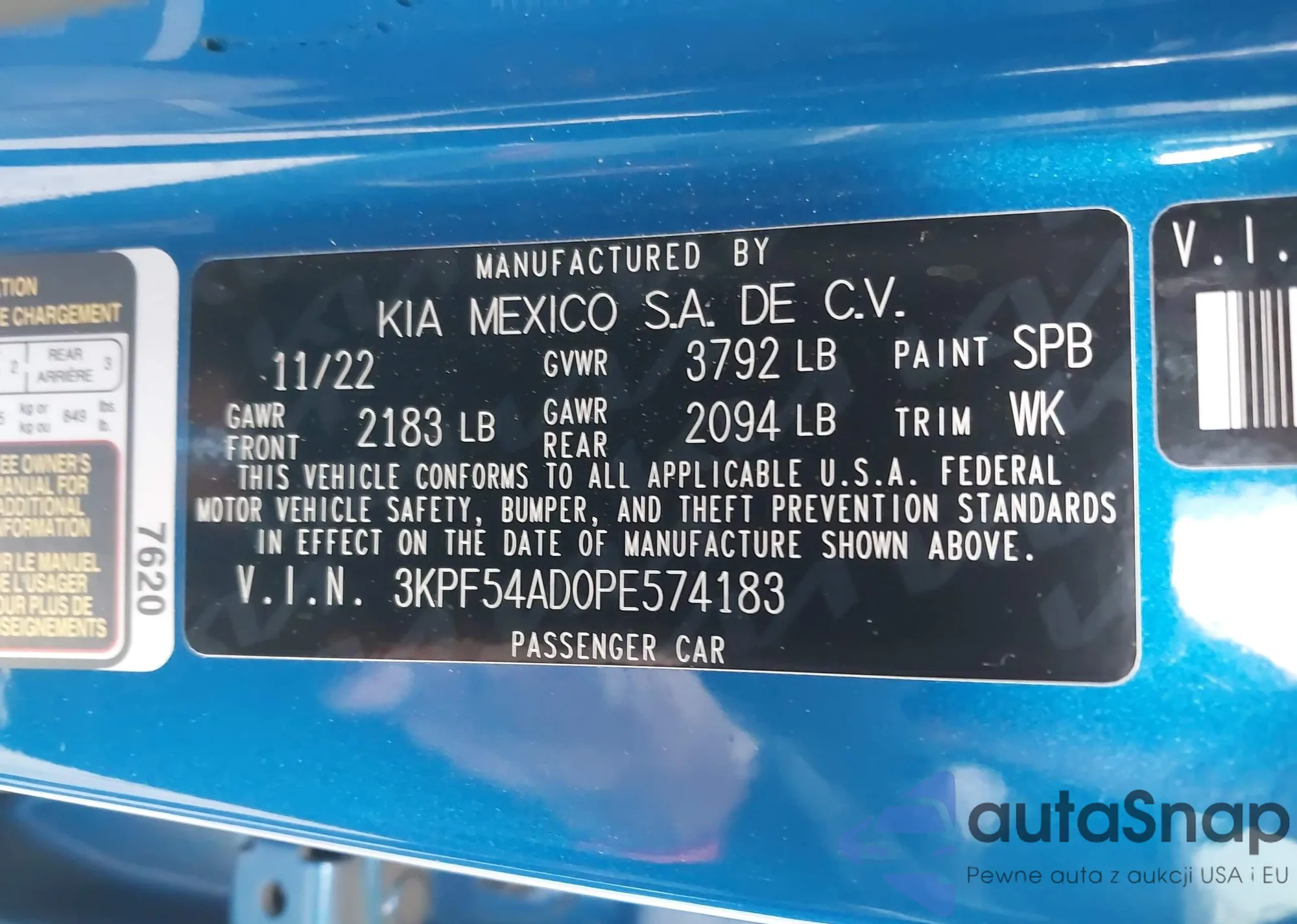• VIN 3KPF54AD0PE574183