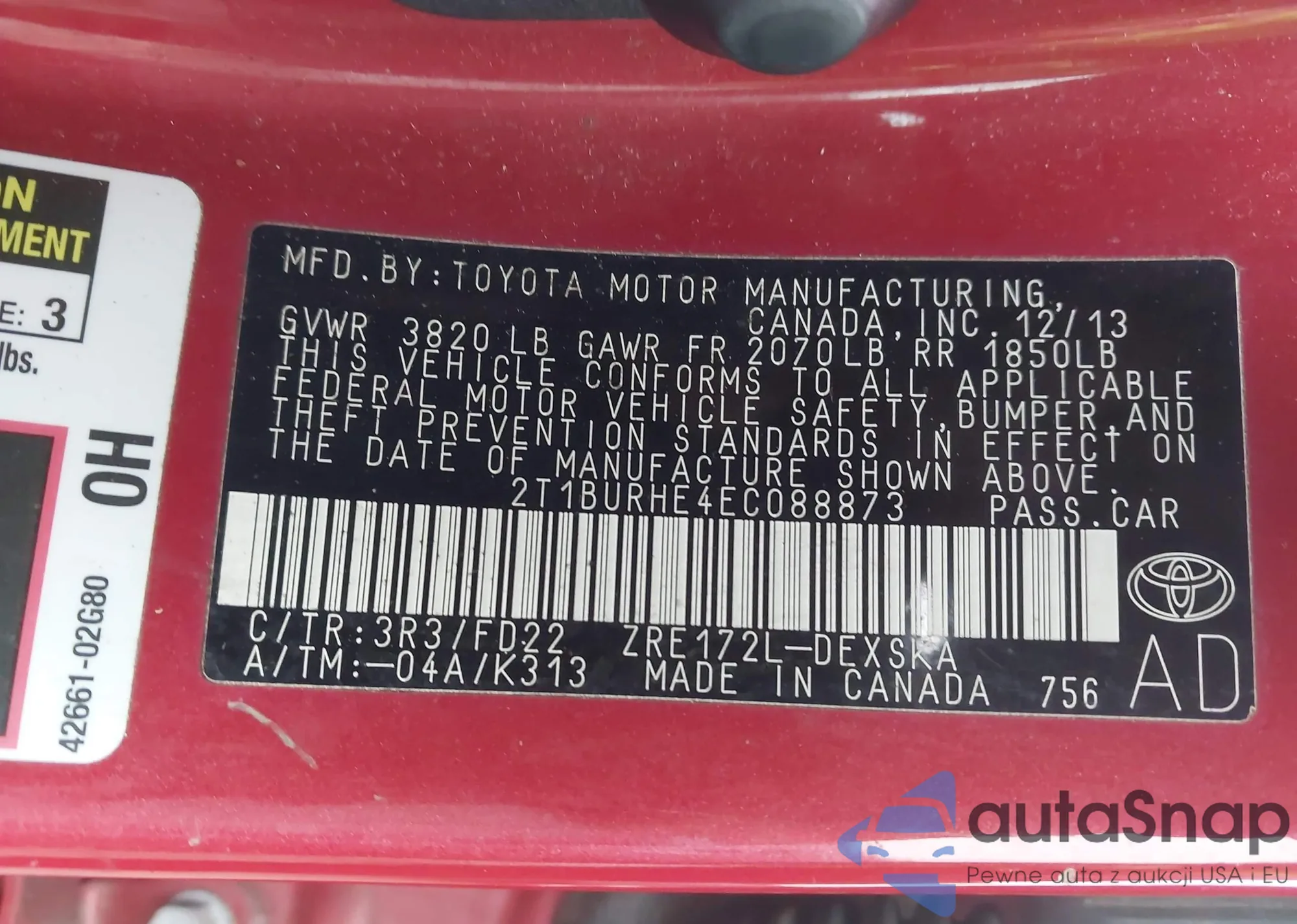 • VIN 4T1BE32KX6U108083