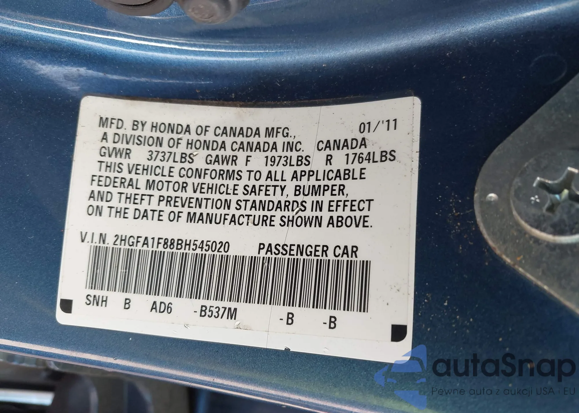 • VIN 5J6RM3H78EL006322