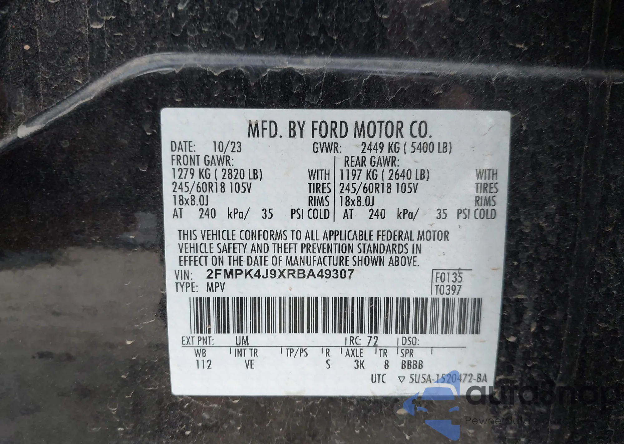 • VIN 2FMPK4J9XRBA49307